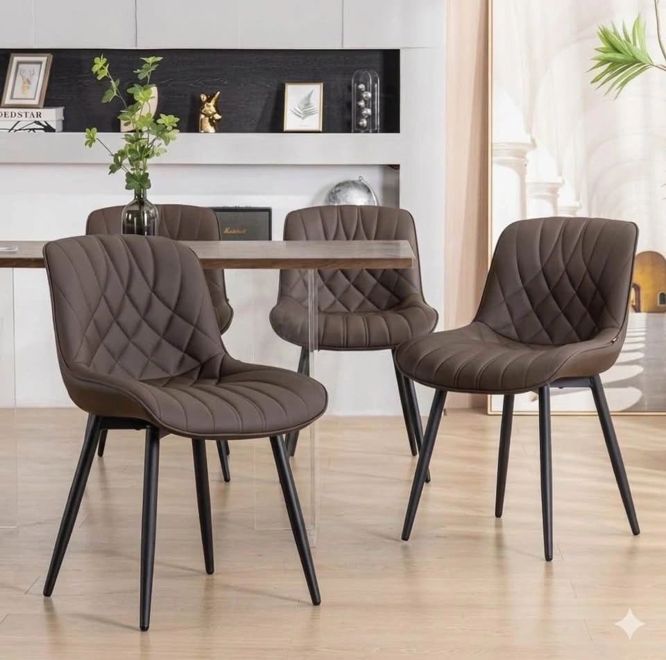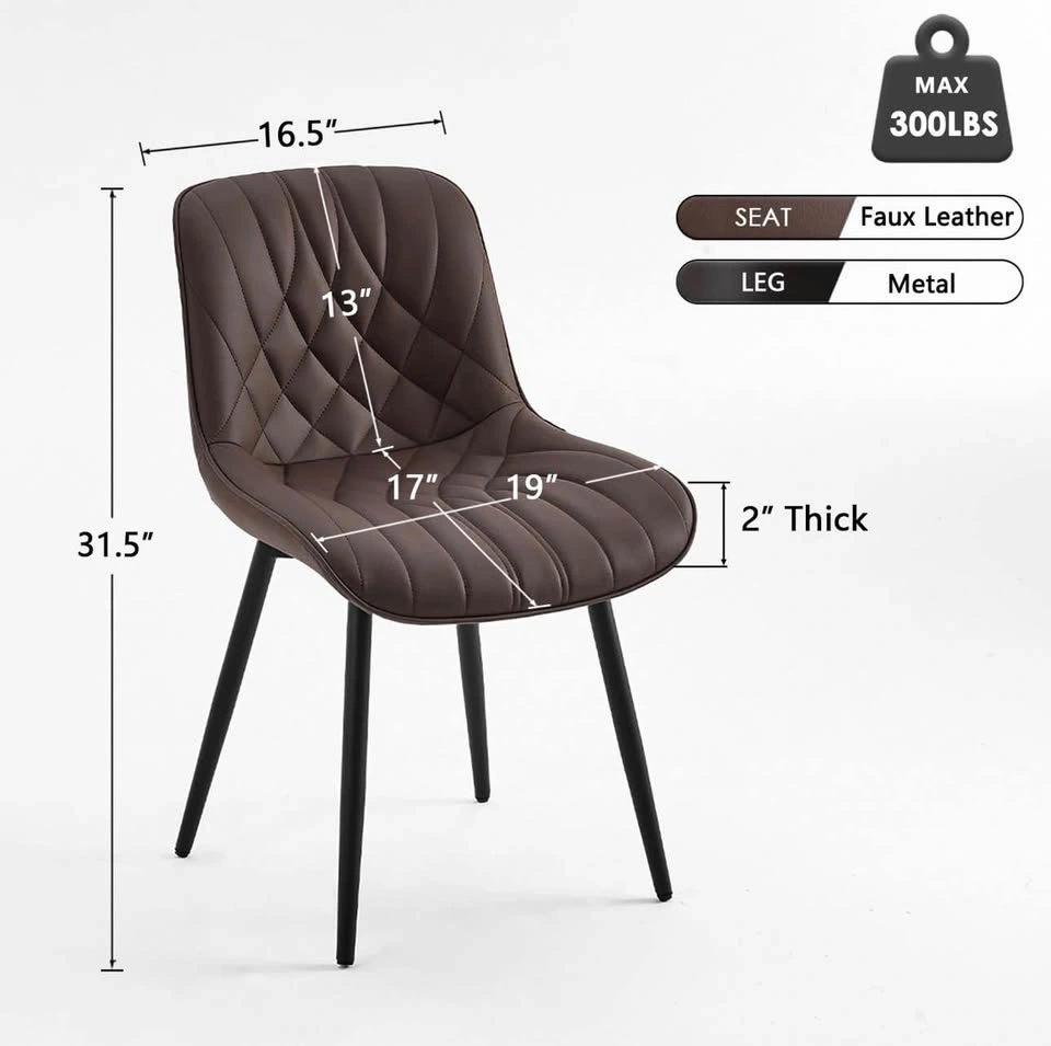 Brand new in box YOUNUOKE dining chairs, set of 4, dark brown. Mid-century modern style with padded faux leather. Durable, comfortable, and easy to assemble.