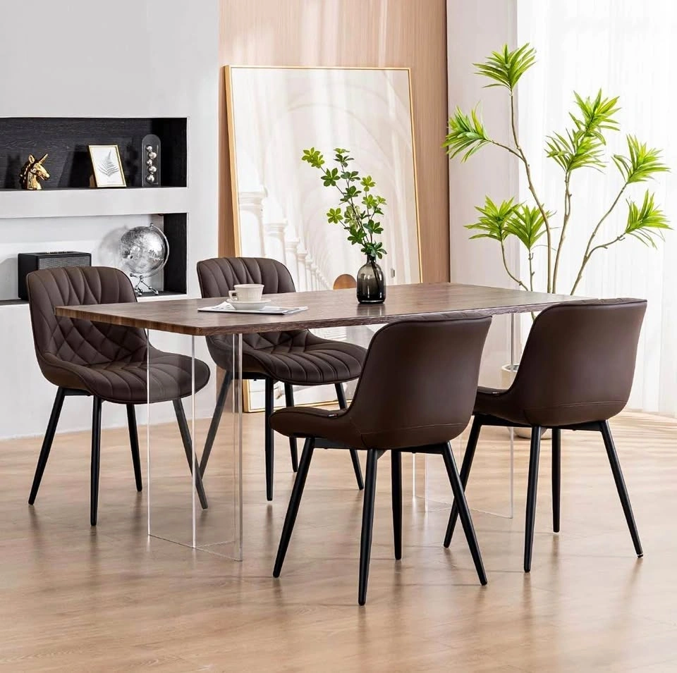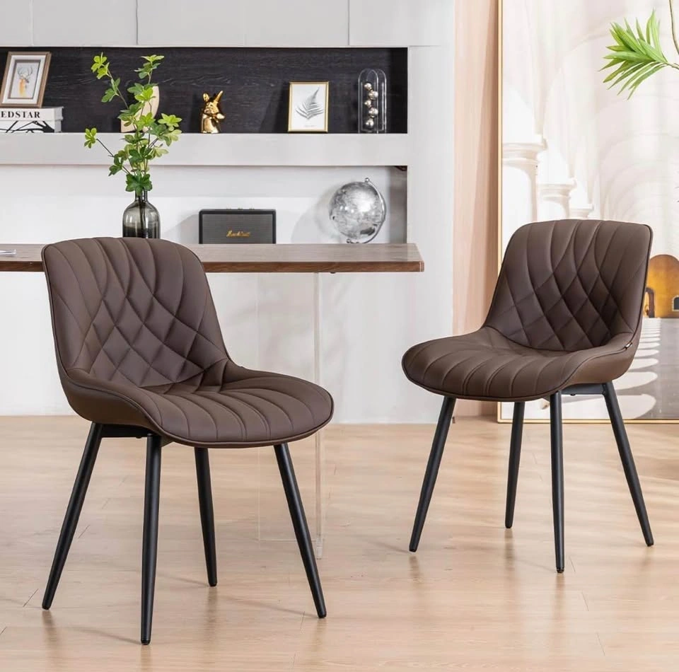Brand new in box YOUNUOKE dining chairs, set of 4, dark brown. Mid-century modern style with padded faux leather. Durable, comfortable, and easy to assemble.