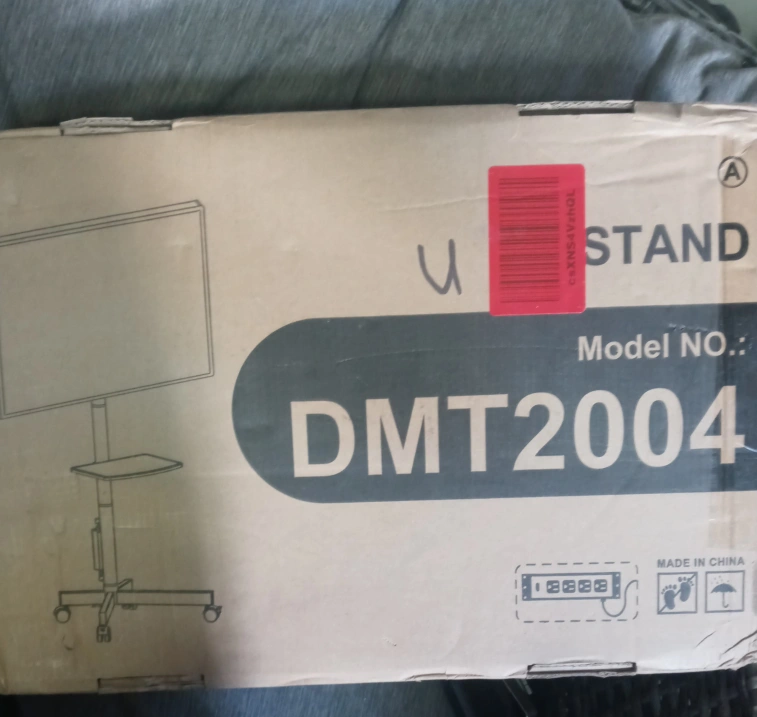 new still in box, Mobile TV stand with wheels, height adjustable. Includes a shelf for either dvd player, Tv box or remote, holds up to a 55" TV