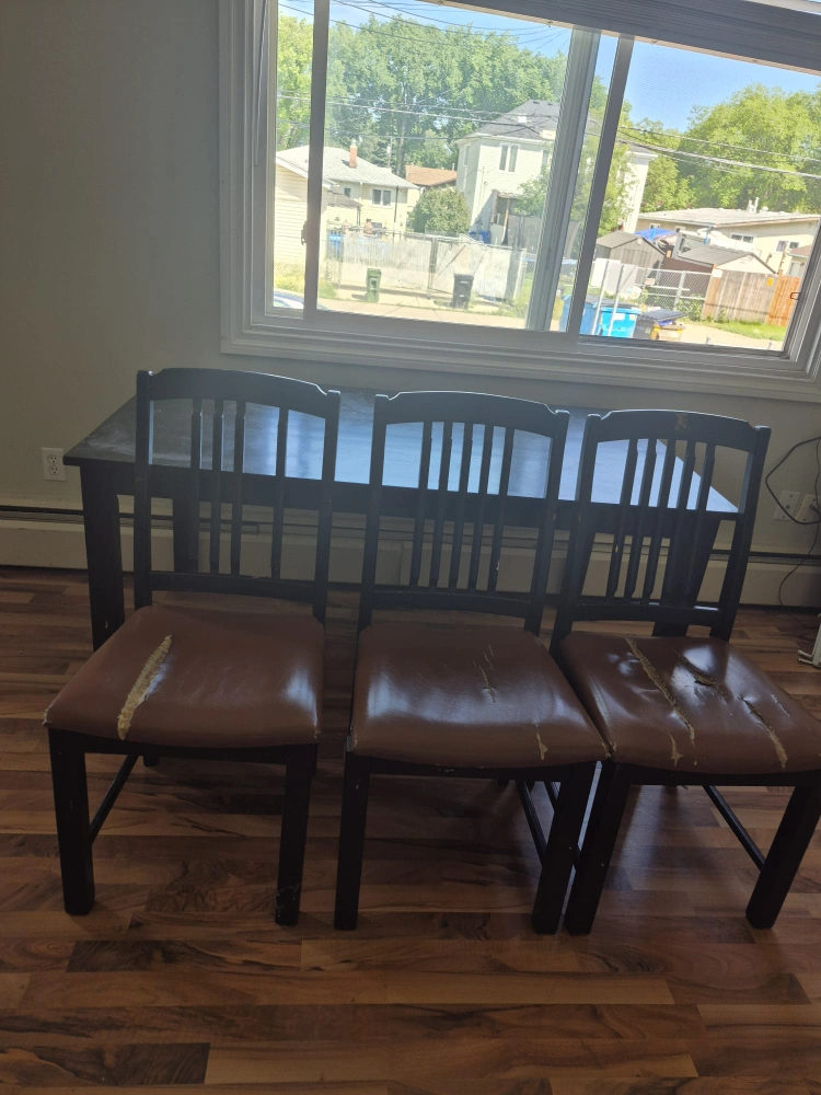 Selling a dining table with 3 chairs. The set has some wear and tear, especially on the chair seats as you can see in the photos. Still a functional set for someone looking for an affordable option!
