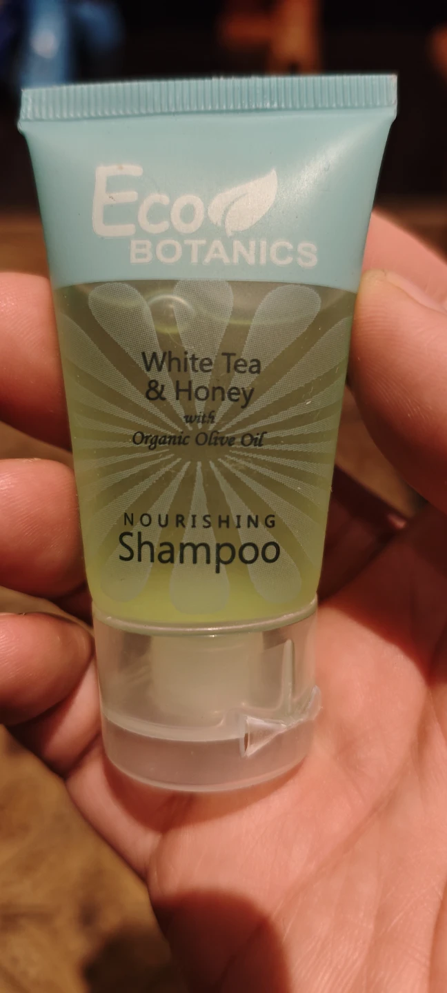 Selling a small tube of Eco Botanics Nourishing Shampoo with White Tea & Honey and Organic Olive Oil. It's a mild salon formula that gently cleanses, leaving hair soft and shiny. This shampoo is part of the Health and Wellbeing formulations and is never tested on animals