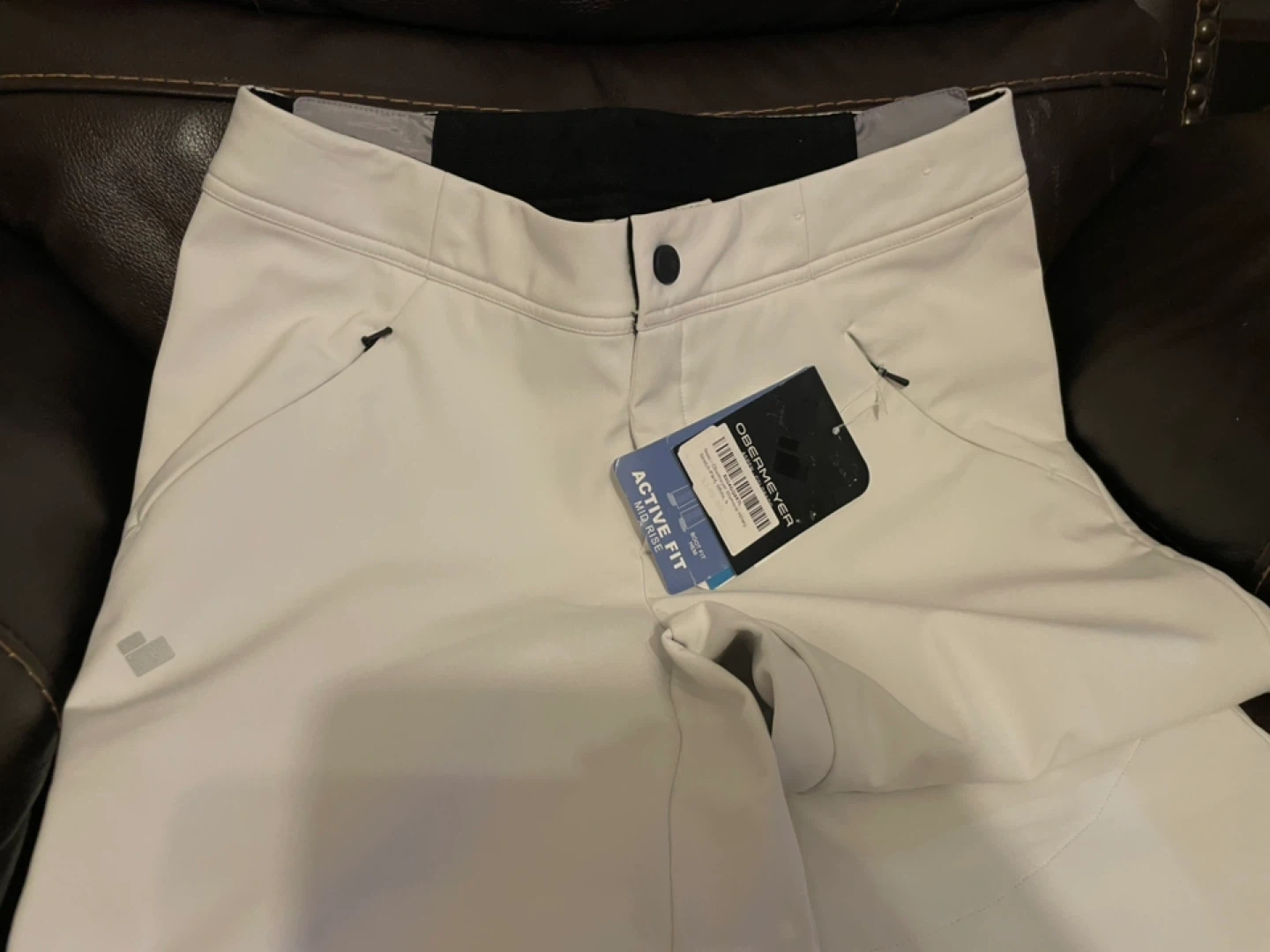 These are new Obermeyer Women's Hillary Stretch Pants in white, size 6! They have a boot fit hem and an active mid-rise fit. The retail price was $149.50