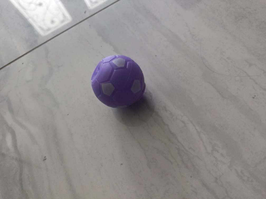 Here's a cute little purple soccer ball! It's perfect for kids or just as a fun little desk toy. It's in good condition and ready for a new home