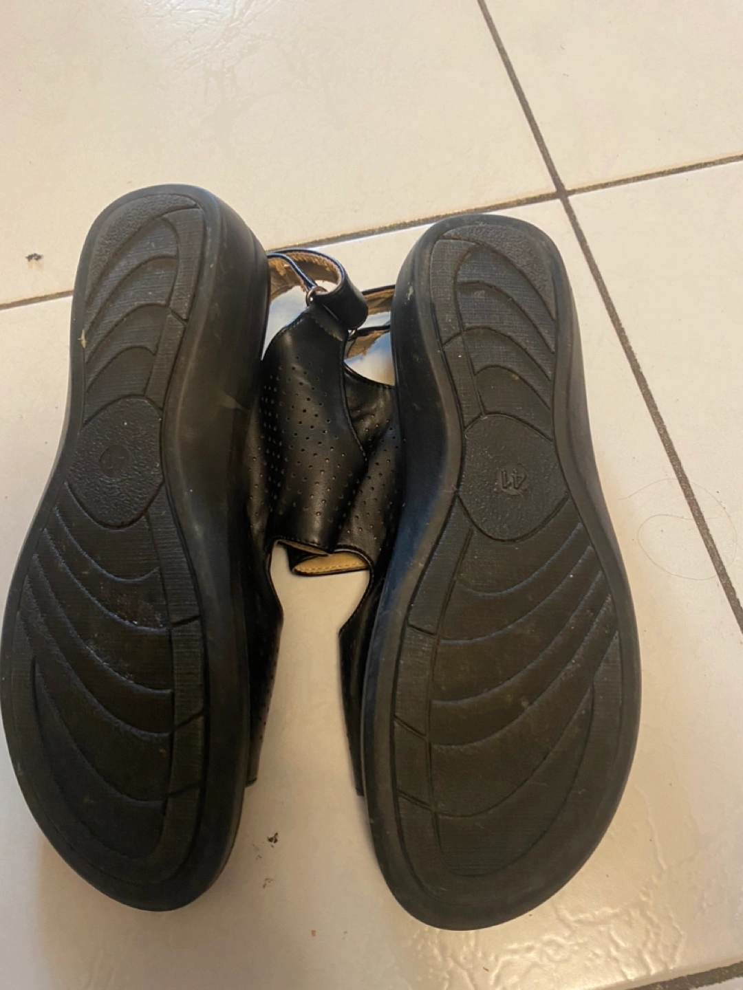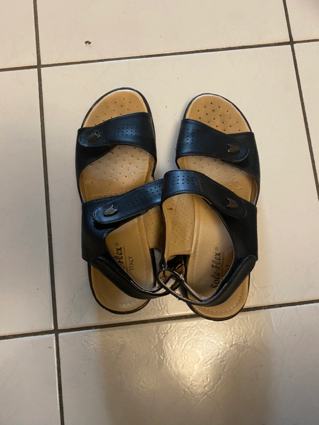 Selling a pair of Sole-Flex Italy sandals in black, size 41. They show some signs of wear but are still in good condition for everyday use