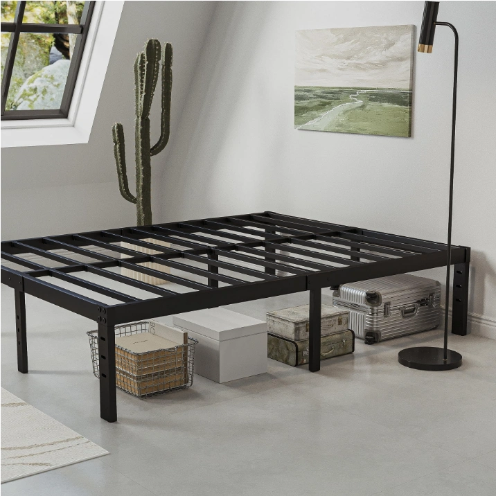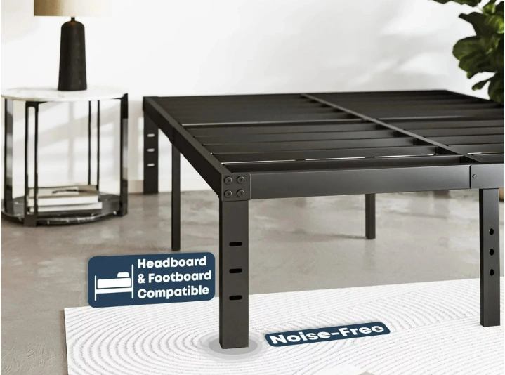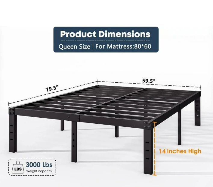 99QFTIME 14" Full Metal Bed Frame with Steel Slats, Heavy Duty Mattress Foundation Price in store - $189 About this item Weight Support: Heavy-duty metal construction provides support of 3500 lbs for Full and Queen size. Noise-Free Design: Anti-slip groove keep the silence from squeak and enhance the stability. No more squeak! No more noise! Perfect option for building a quiet and cozy bedroom. No Box Spring Needed: Durable metal slats and platform bed frames extend your mattress life without an extra box spring. Easy Assembly: All tools and hardware included. Assembles by 2 people in 30 minutes or less. Headboard & Footboard Compatible: 3 reserved holes on each leg of frame, easy to attach additional headboard or footboard freely.