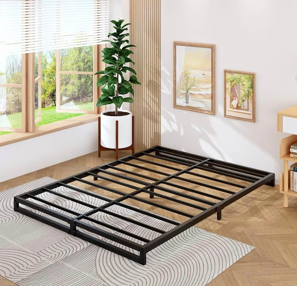 • No box spring needed — metal slats support memory foam or spring mattresses directly