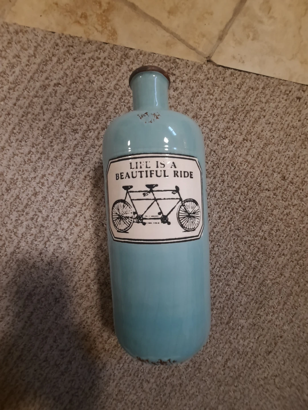 Blue Decorative Bottle with "Life is a Beautiful Ride"