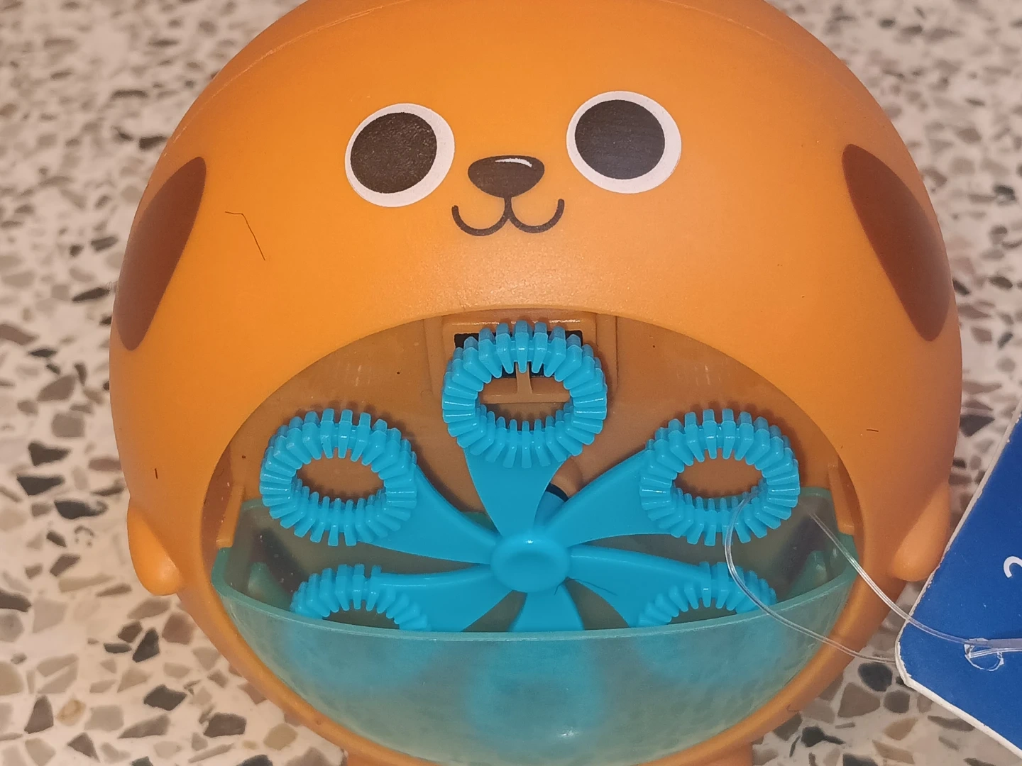 This orange animal bubble blower is for ages 3 and up. It requires 2x AA batteries, which are not included. Bubbles are sold separately. It's great for outdoor fun!