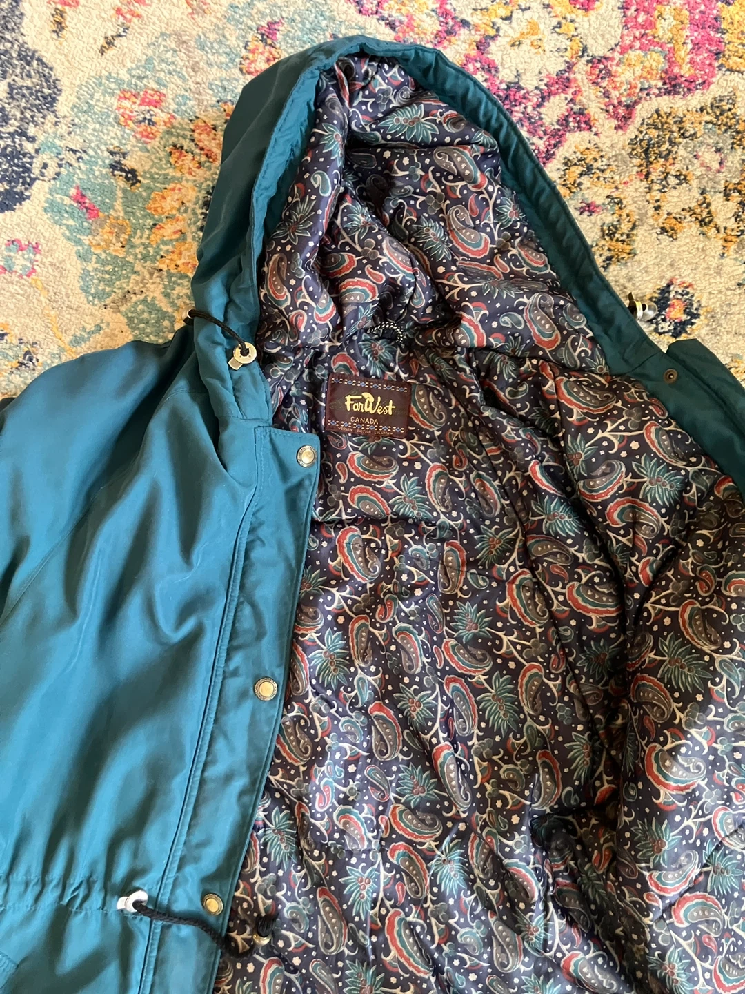Buy & SellTeal and paisley winter jacketTeal and paisley winter jacket$60Around an l-xl size. Made in Canada. Silky inner lining. Far west brand.ConditionLike newSizeXl?BrandFar westWHERE TO MEETCheck LocationView MapSELLERBasilWallance Emerson11411 reviews0 chats·0 favorites·7 viewsSEND CHAT TO SELLERHi Basil! I’m interested in your listing.Hi Basil! I’m interested in your listing.Get the Karrot app to chatSign In to chat