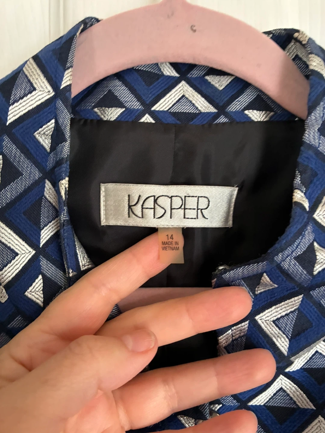 Kasper Blue Geometric Print Blazer Jacket Size 14