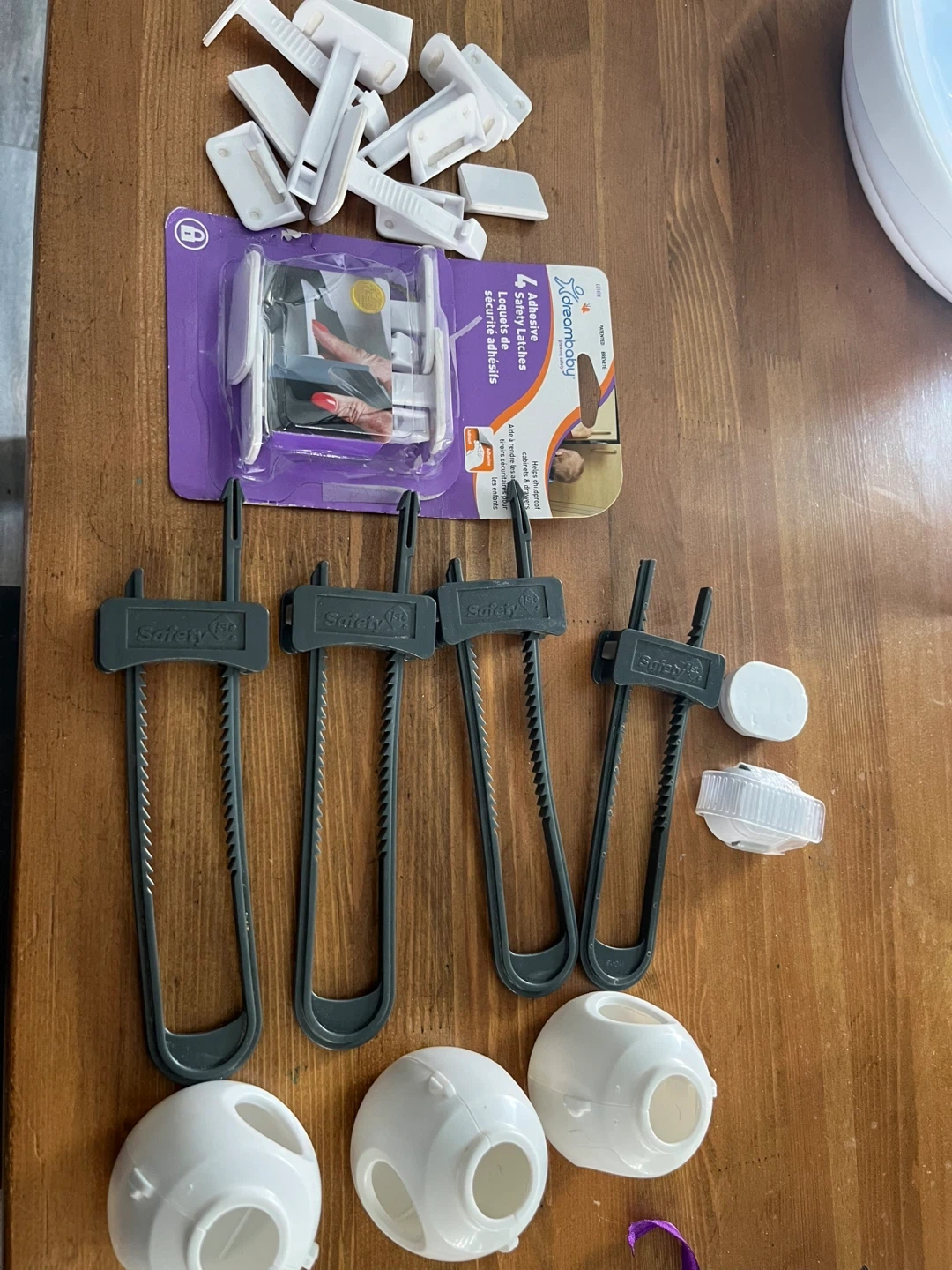 Baby proofing aids help keep children from accessing door knobs, cabinets ,and drawers. Great for keeping little ones safe around the house!