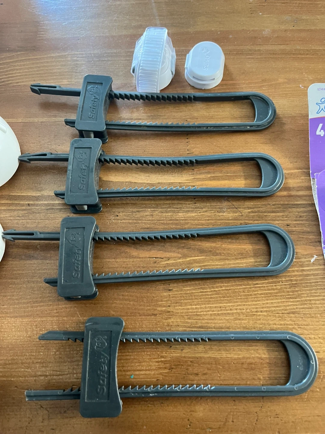 Baby proofing aids help keep children from accessing door knobs, cabinets ,and drawers. Great for keeping little ones safe around the house!