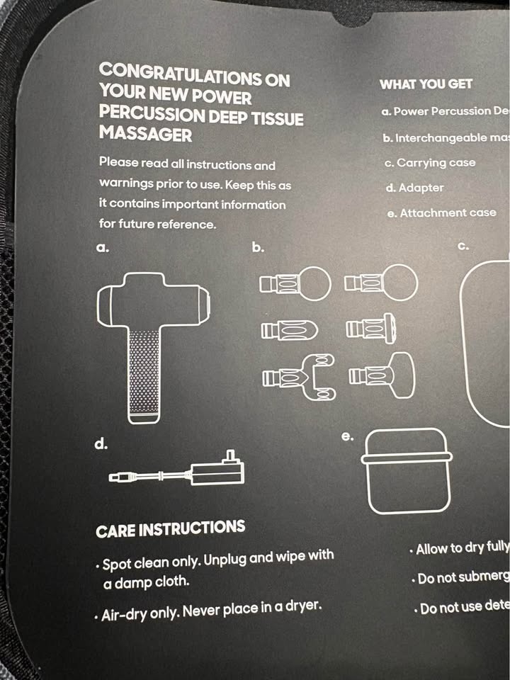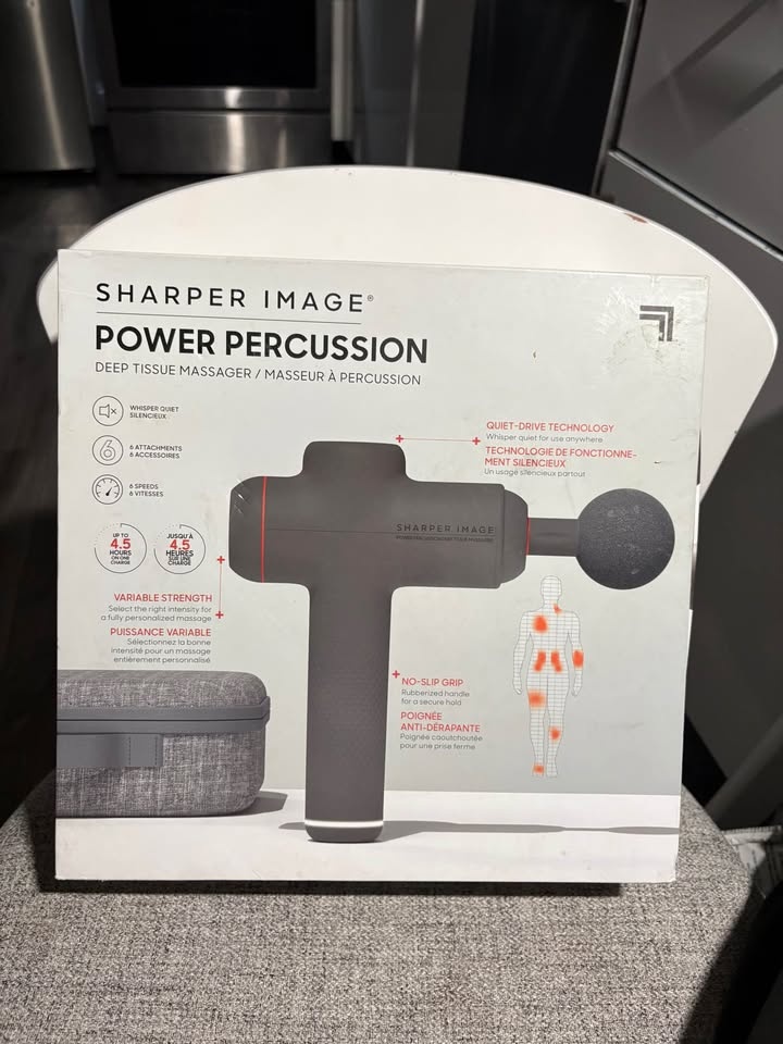 Uses percussive therapy to target sore muscles and knots. Offers up to 4.5 hours of operation on a single charge. Features 6 different speed settings to customize intensity. Includes 6 interchangeable attachments for targeting different muscle groups.