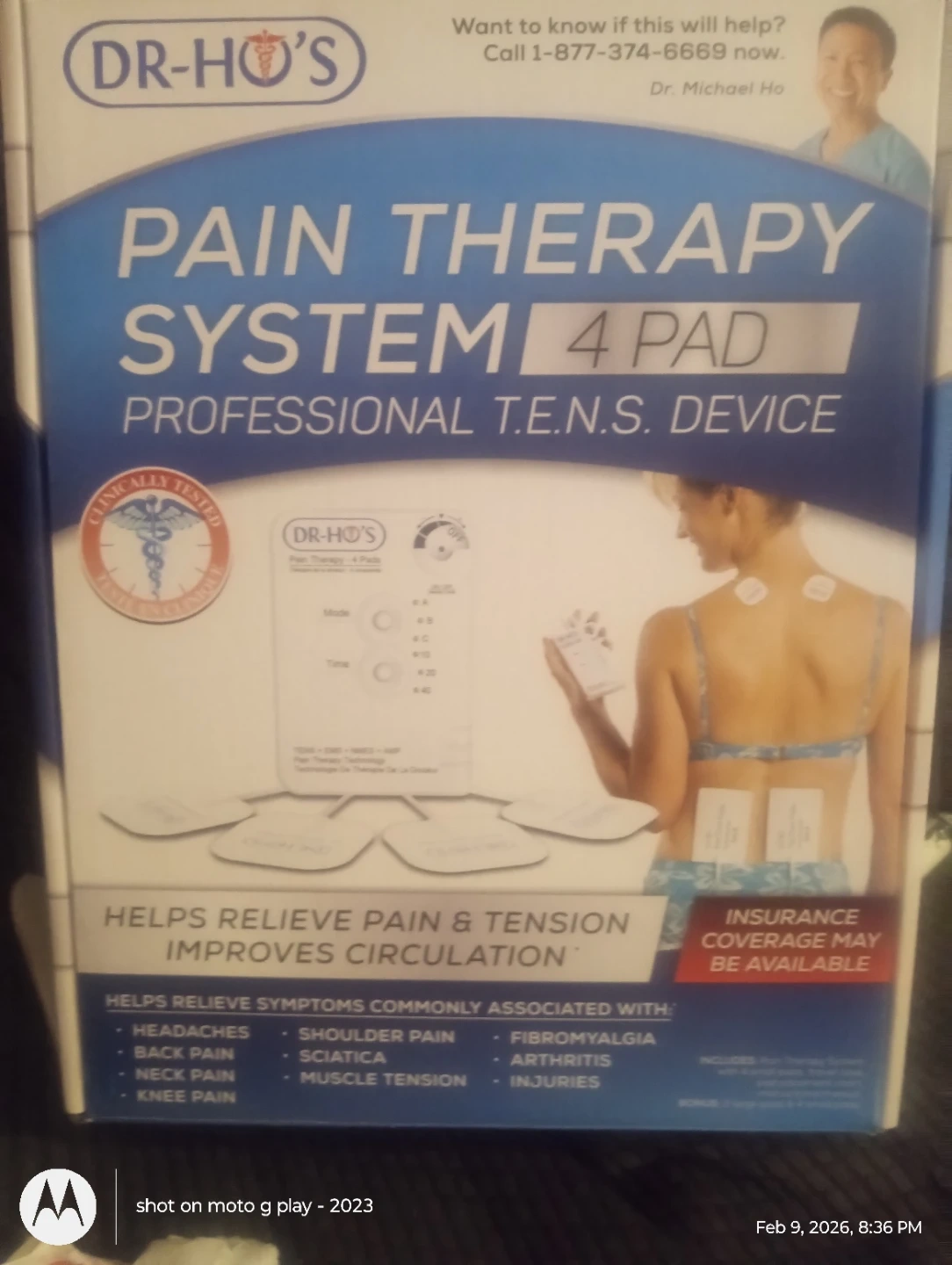 This DR-HO'S Pain Therapy System is a professional T.E.N.S. device. It helps relieve pain and tension while improving circulation. It's clinically tested and designed for symptoms like headaches, back pain, and muscle tension.