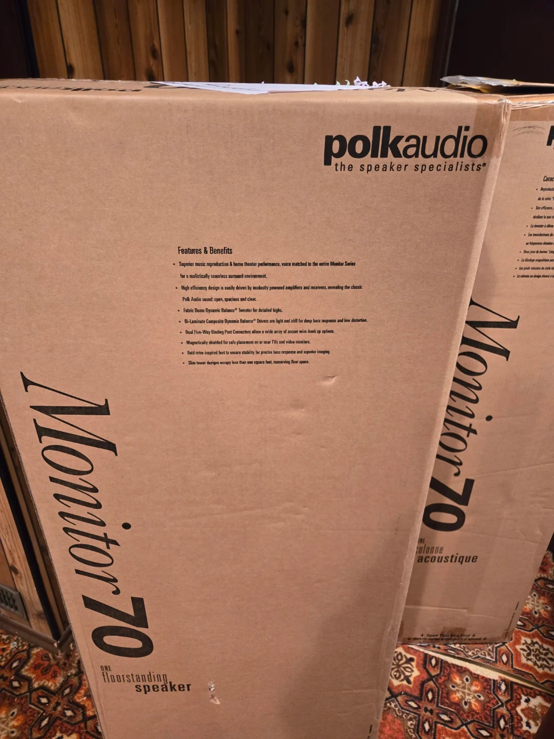 Polk Audio Monitor 70 floorstanding speaker, perfect for music reproduction and home theater. Features high-efficiency design with Dynamic Balance drivers. Includes owner's manual. $250 each