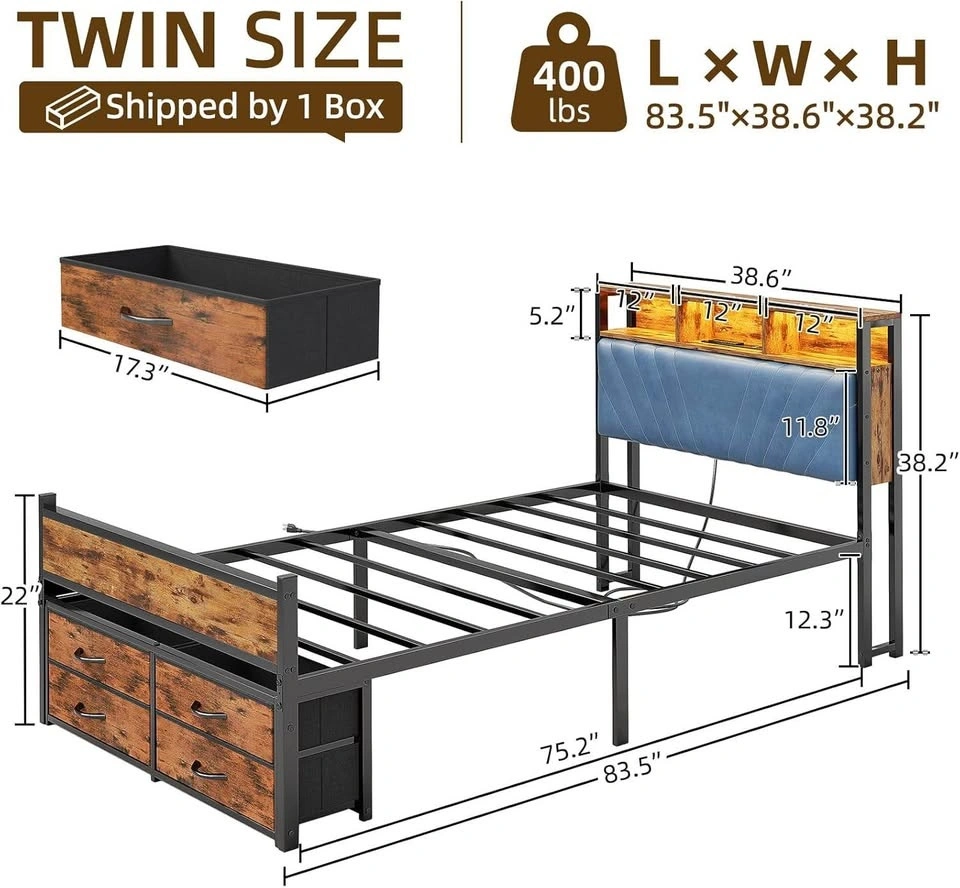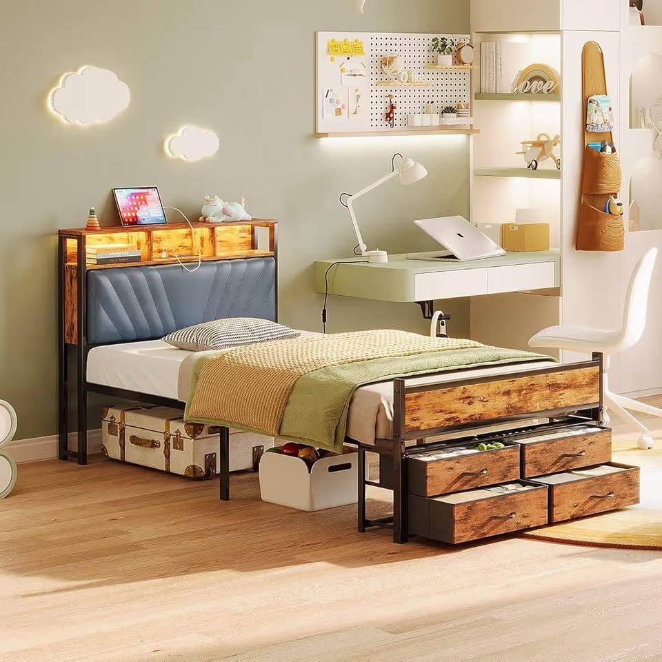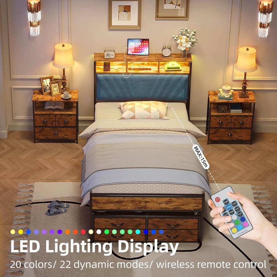 Twin Platform Bed with Storage Drawers & LED Lights
