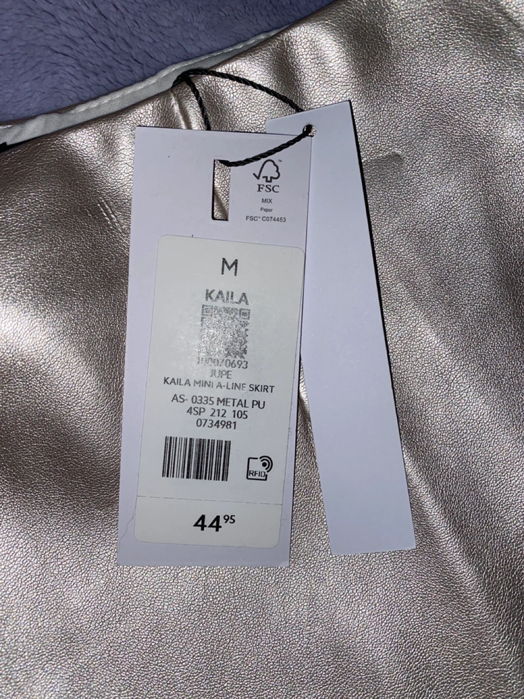 This is a brand new Dynamite Kaila mini A-line skirt! It's a size medium and has a metallic PU finish. The tag says it's style AS-0335. Originally bought for $44.95