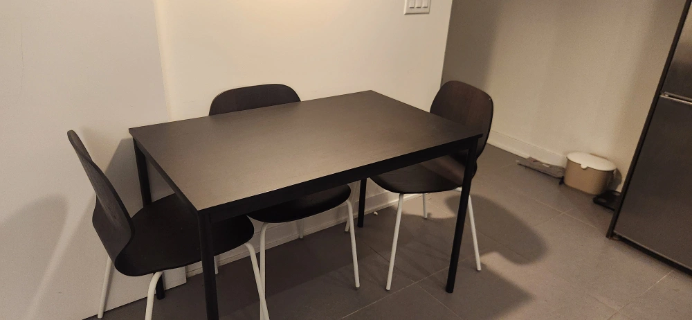 Compact Dining Set with Wooden Top and Black Frame