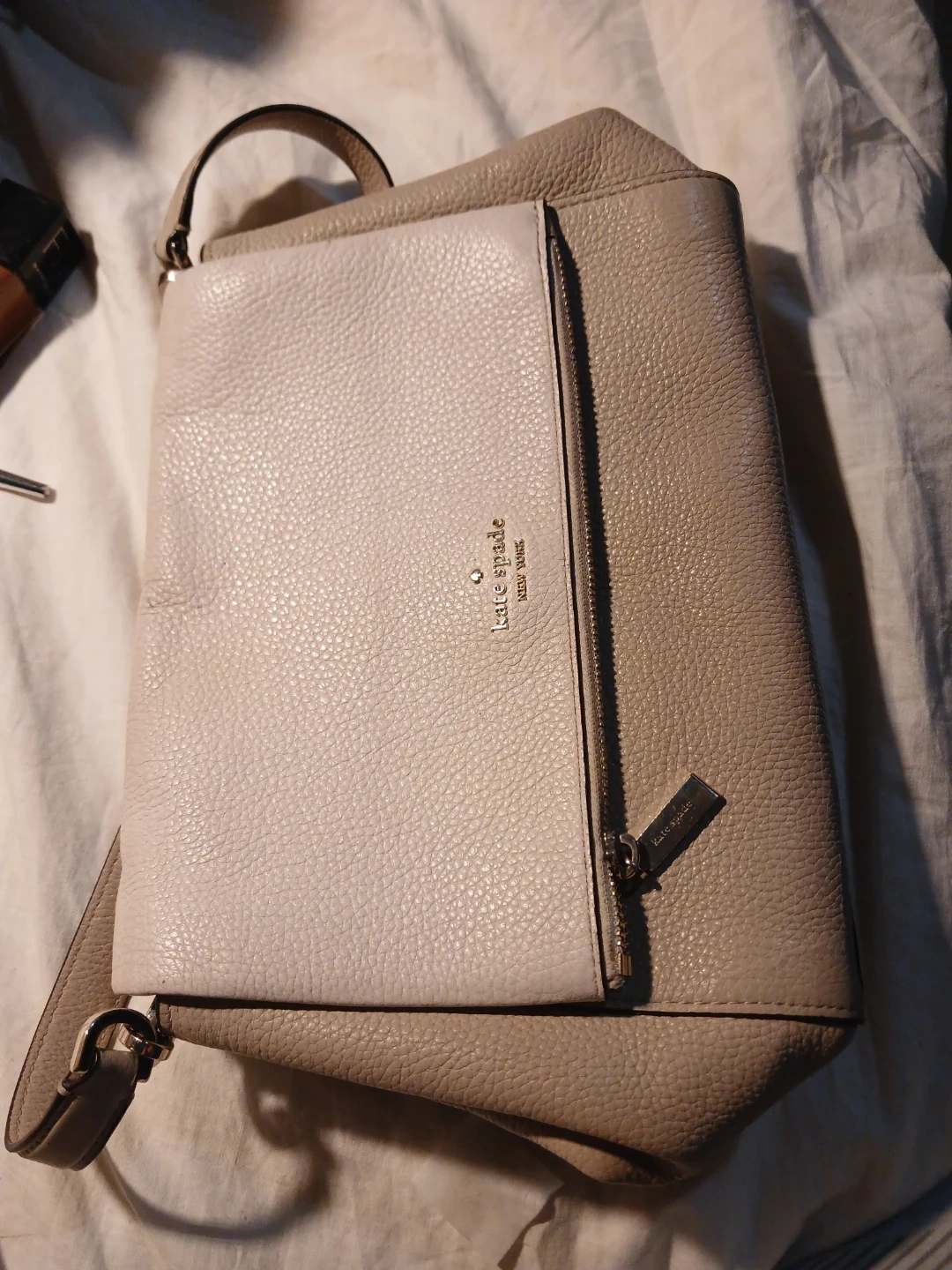 Kate Spade Leila medium shoulder bag. It's made of beige and white leather. Guenuine Kate Spade.