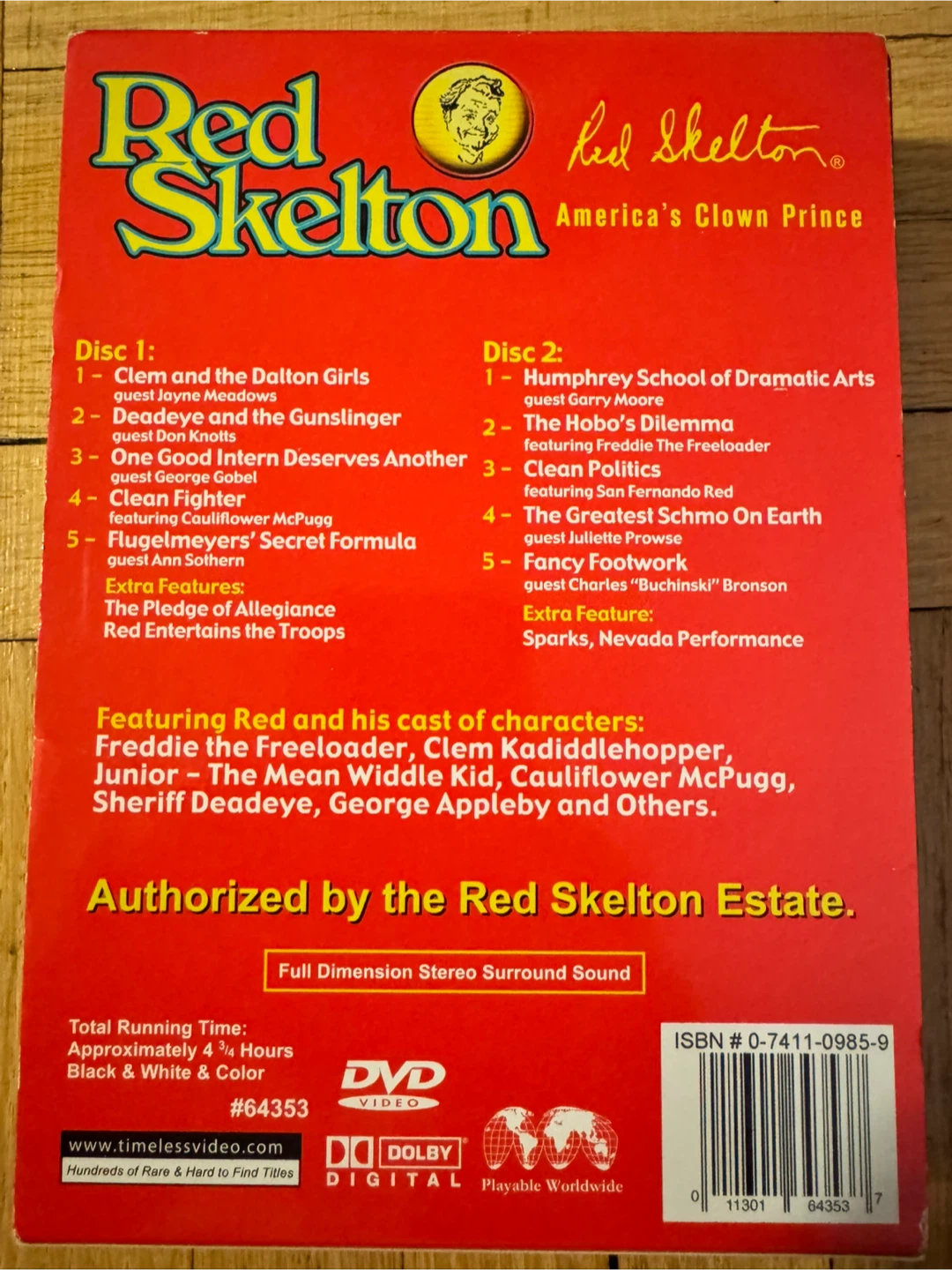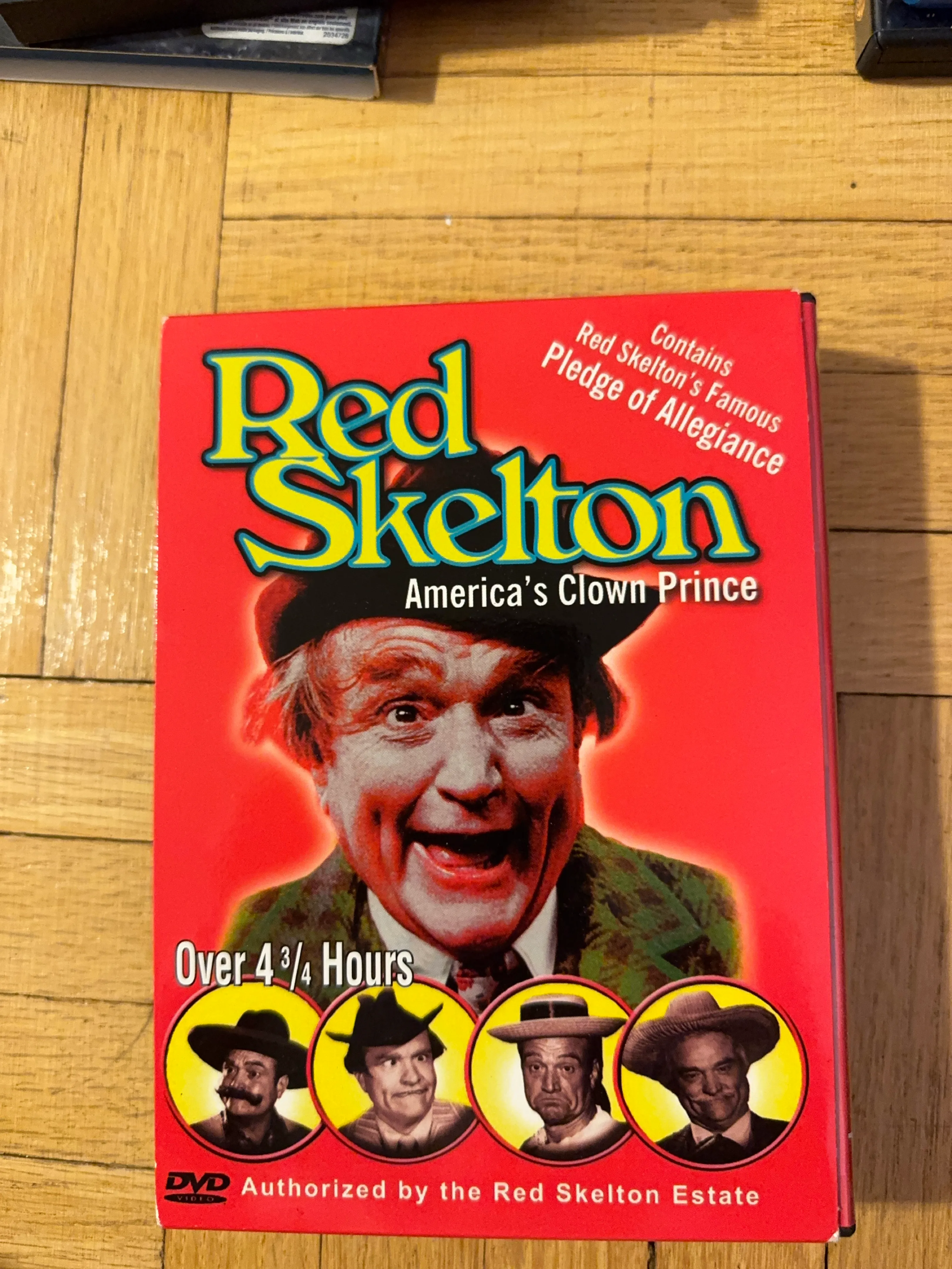 Selling a DVD of Red Skelton: America's Clown Prince. It contains Red Skelton's Famous Pledge of Allegiance and over 4 3/4 hours of content. The DVD is authorized by the Red Skelton Estate and features full dimension stereo surround sound. It includes a variety of skits and performances from the legendary comedian