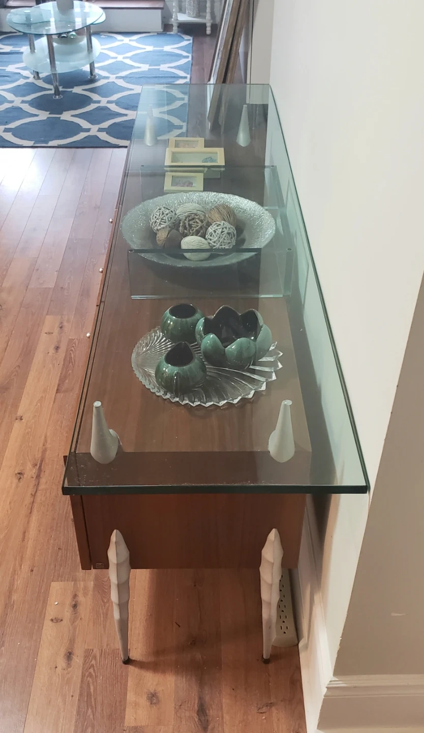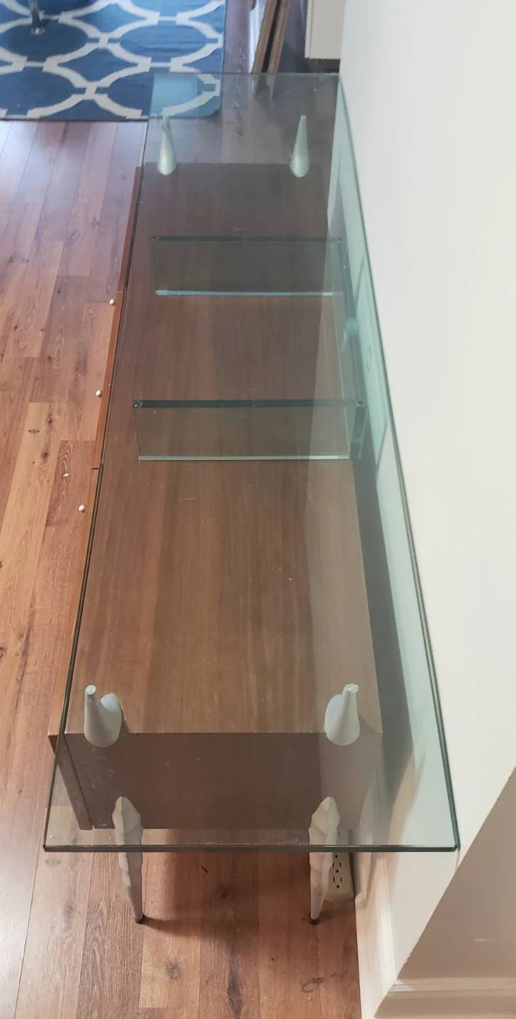 * Topped with a clear glass surface.