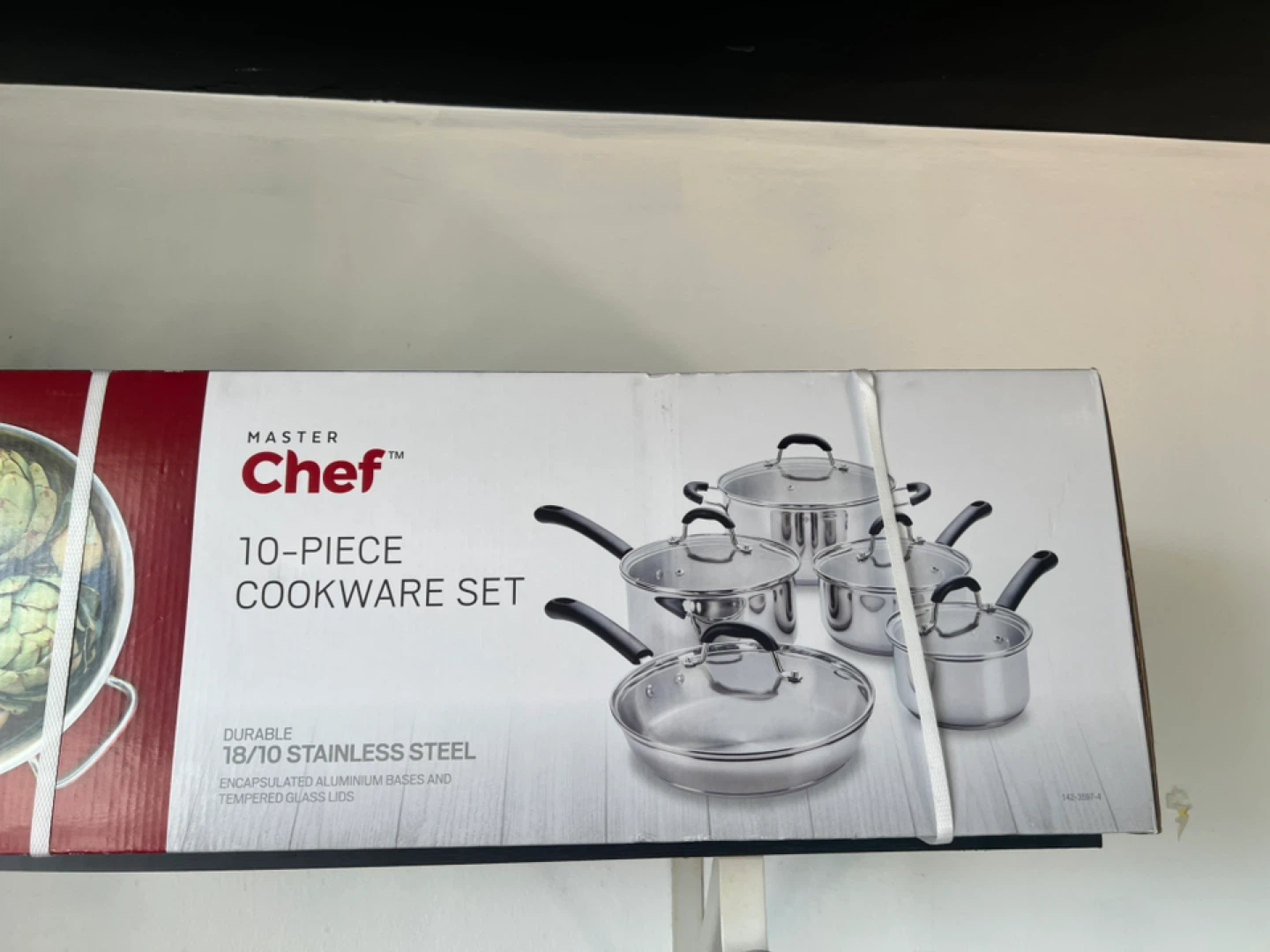 This Master Chef cookware set includes 10 pieces. It's made of durable 18/10 stainless steel with encapsulated aluminium bases and tempered glass lids. This set is suitable for outfitting a new kitchen or upgrading your current cookware!