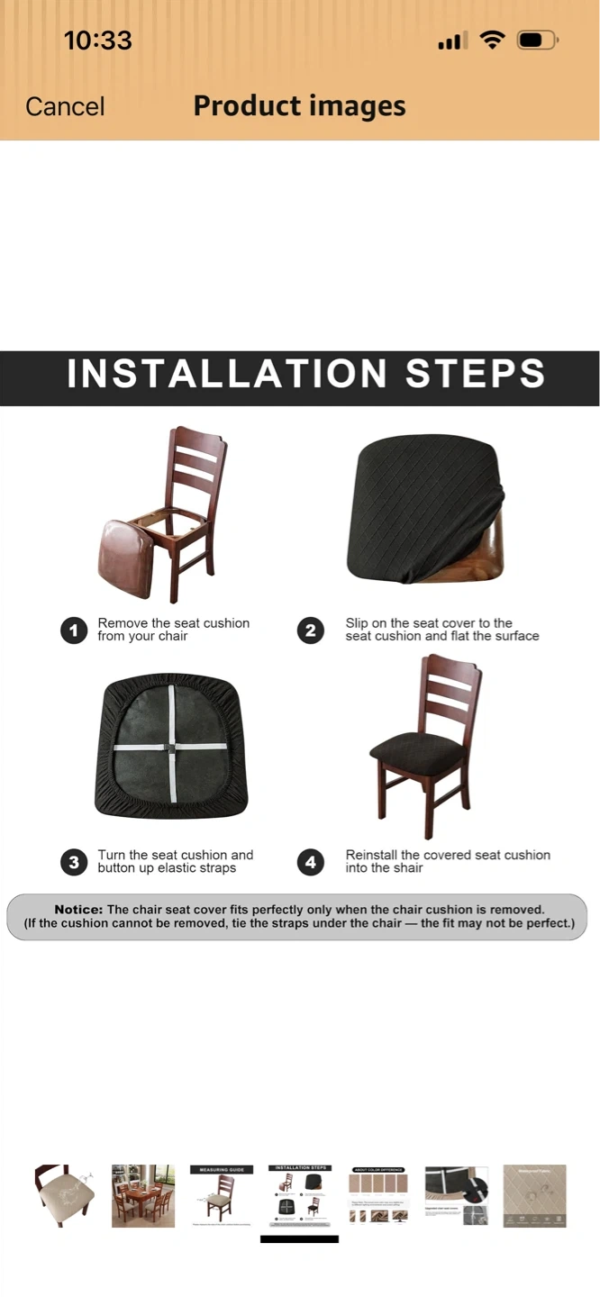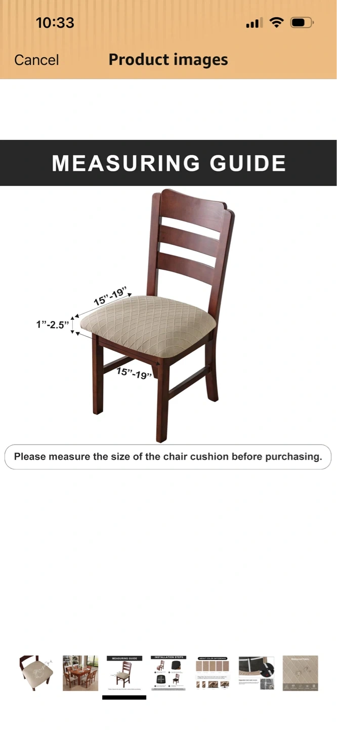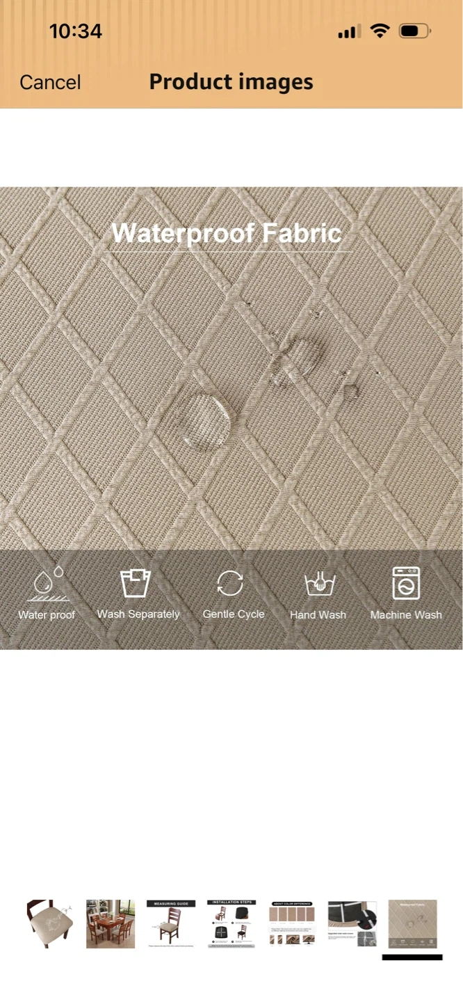 Selling a new set of ,6 ,Genina waterproof dining chair seat covers in khaki. Set includes 6 pcs. Fabric is waterproof and machine washable. Cushion size fits 15"-19" wide and deep, and 1"-2.5" thick.