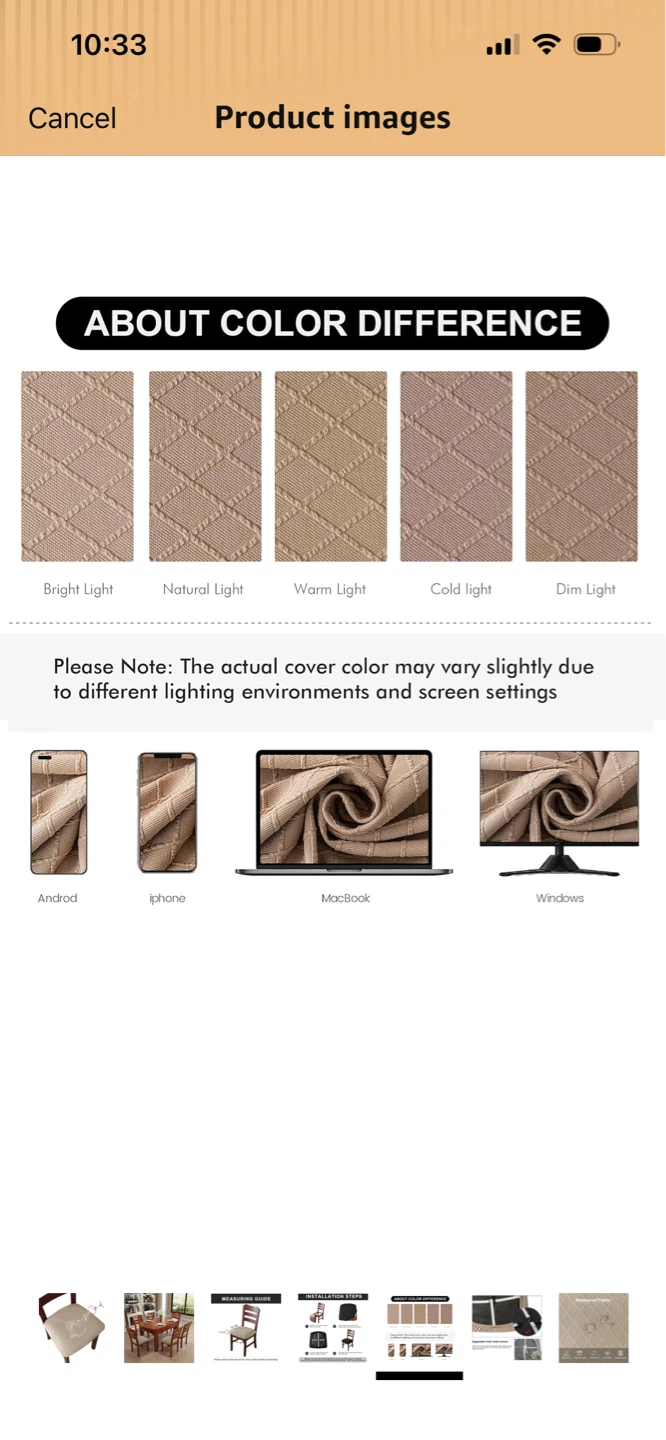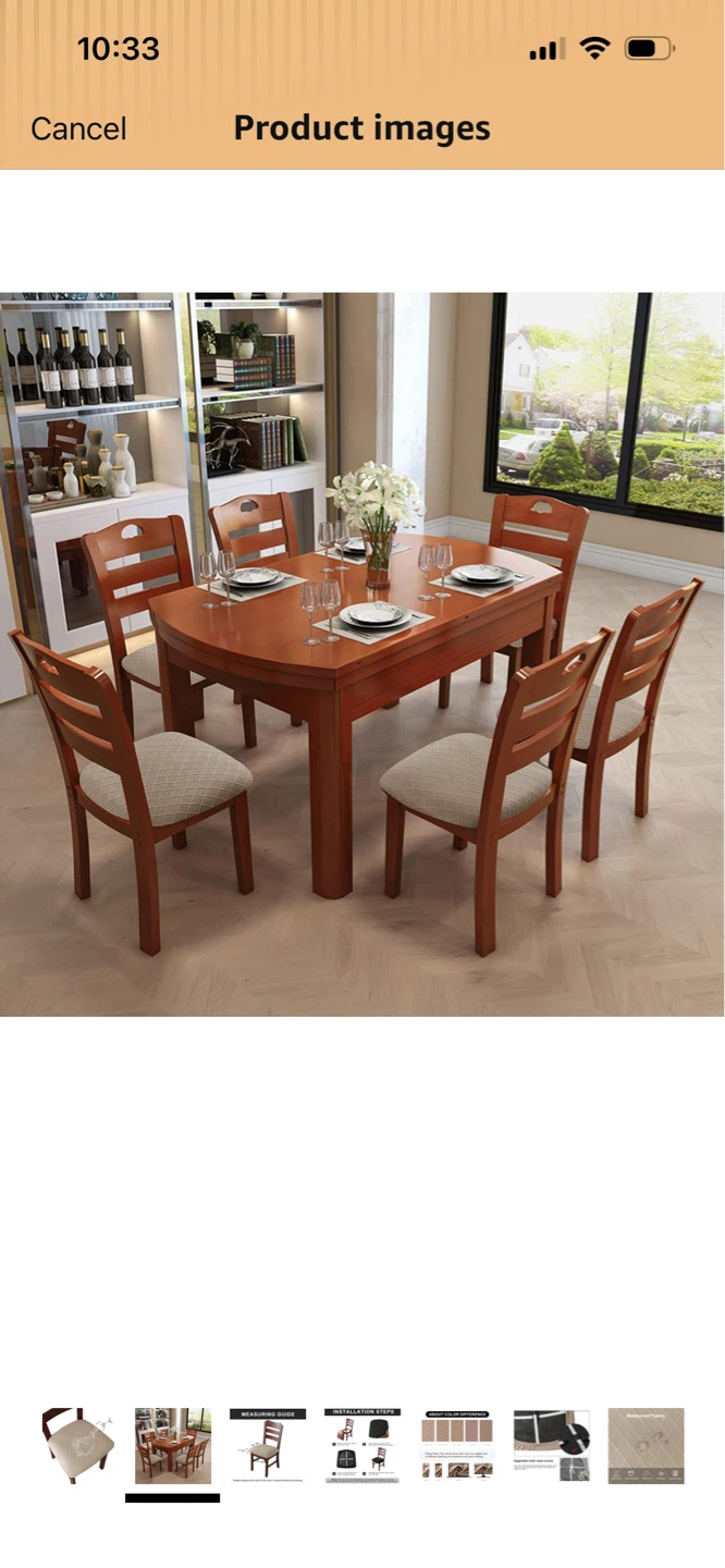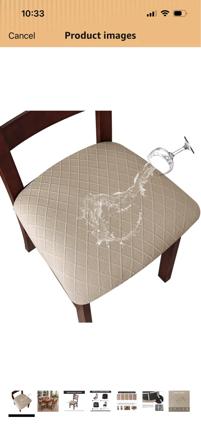 Selling a new set of ,6 ,Genina waterproof dining chair seat covers in khaki. Set includes 6 pcs. Fabric is waterproof and machine washable. Cushion size fits 15"-19" wide and deep, and 1"-2.5" thick.