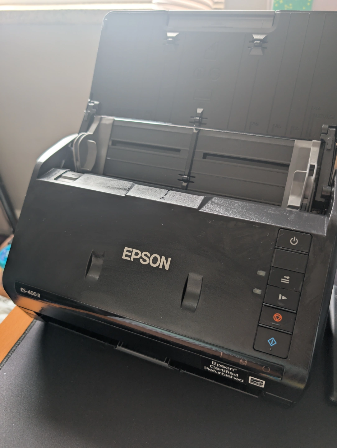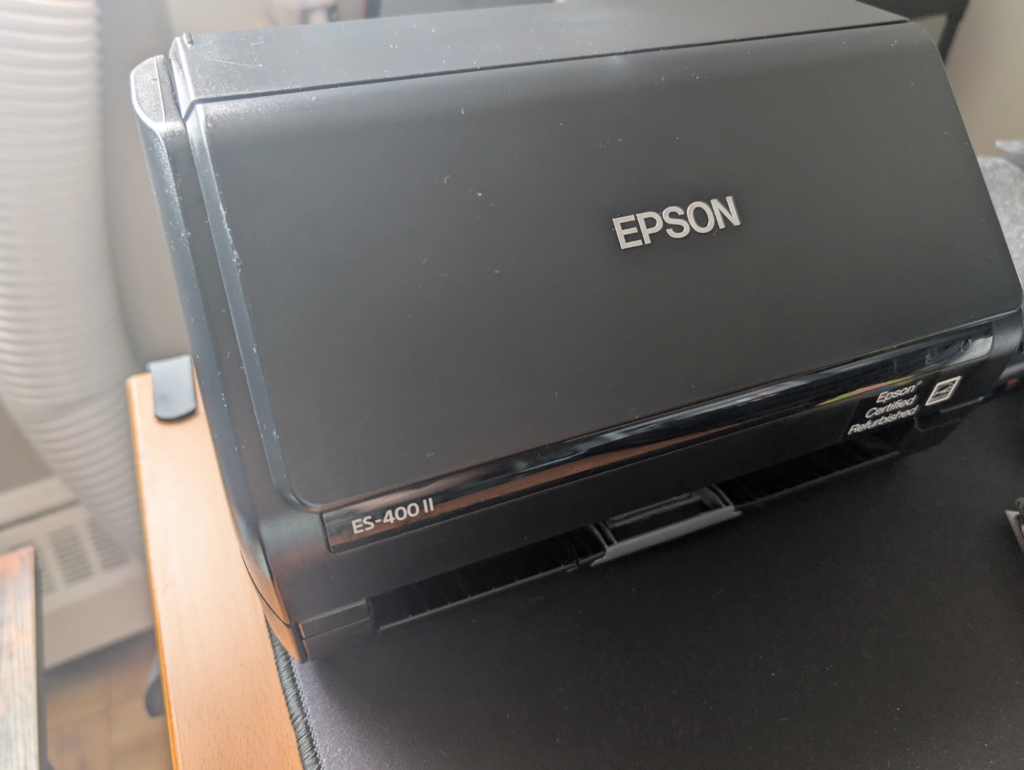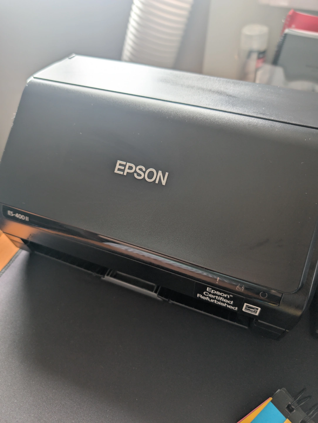 Epson ES-400II document scanner. Compact design. Includes various scan options. Excellent for home or office use. The scanner scans both sides of a page at up to 40 ppm/80 ipm.
