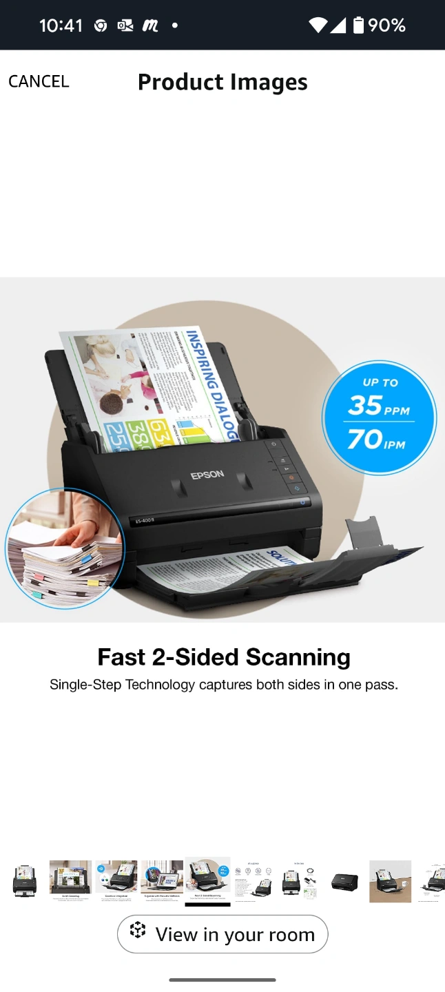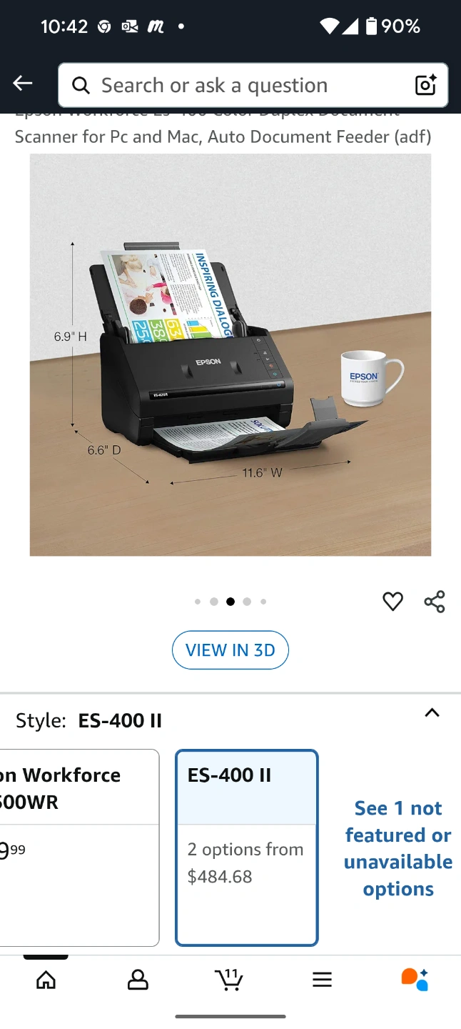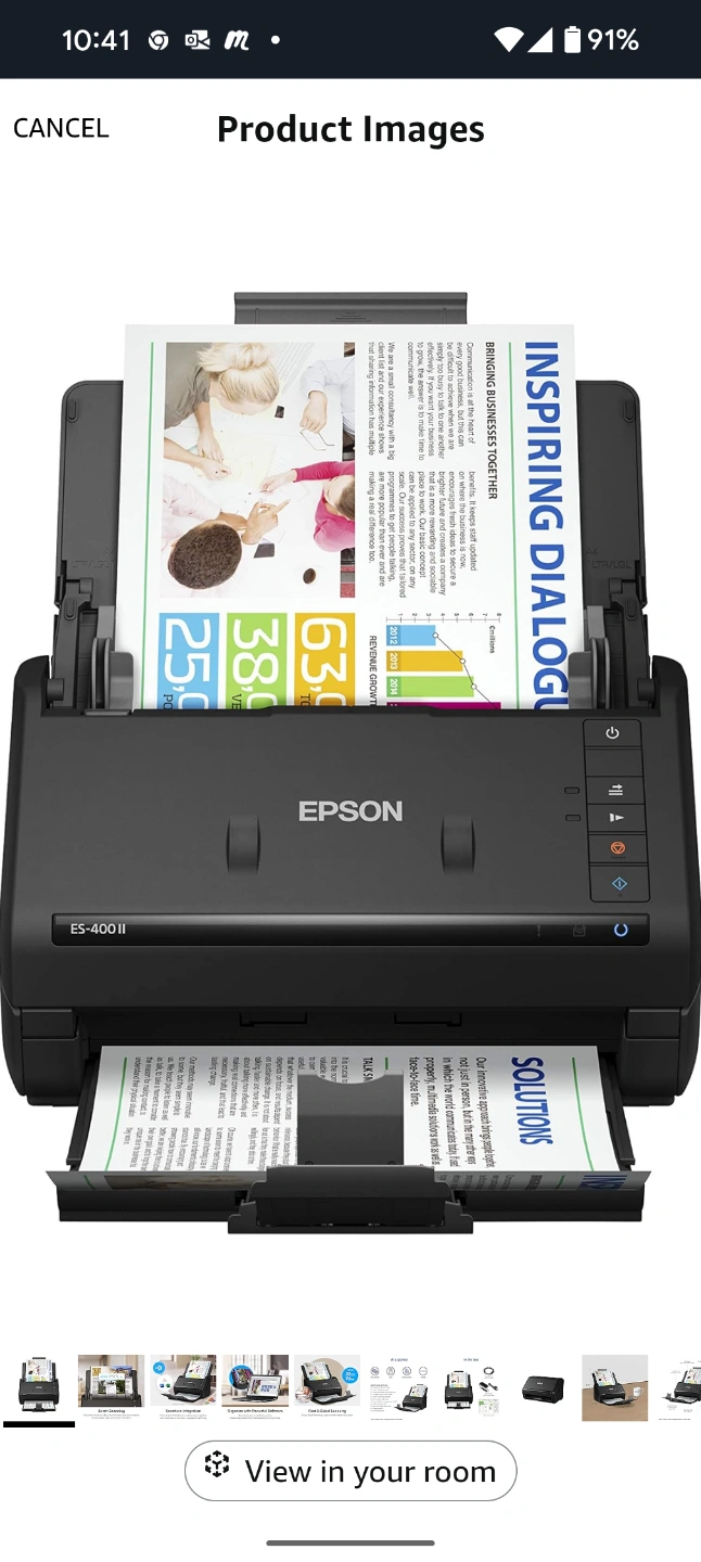 Epson ES-400II document scanner. Compact design. Includes various scan options. Excellent for home or office use. The scanner scans both sides of a page at up to 40 ppm/80 ipm.