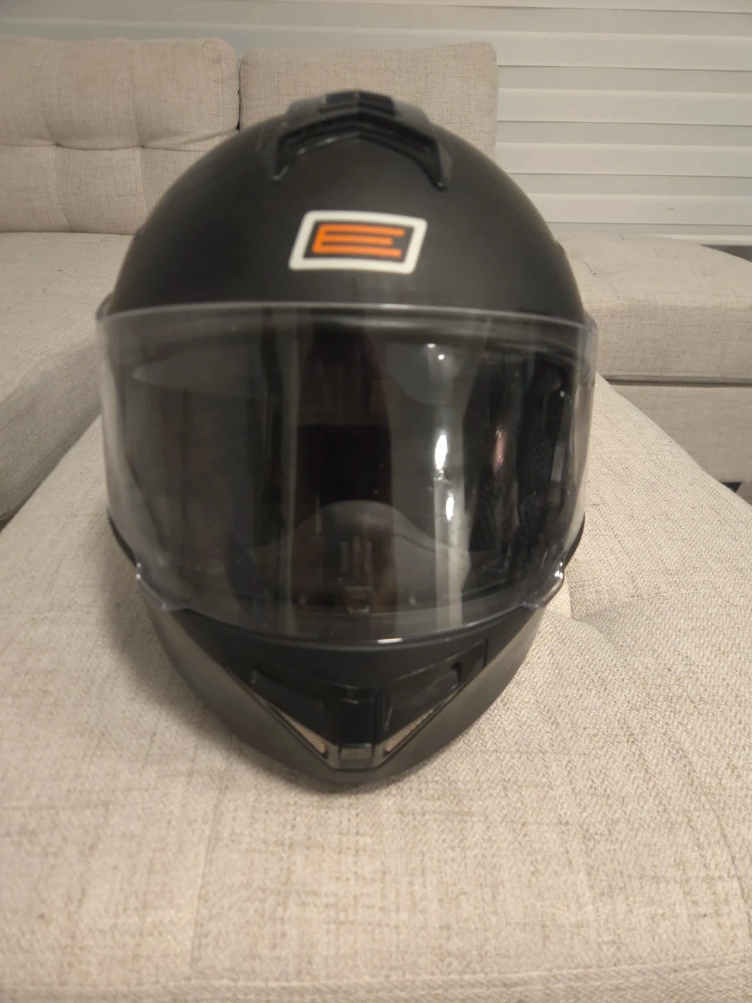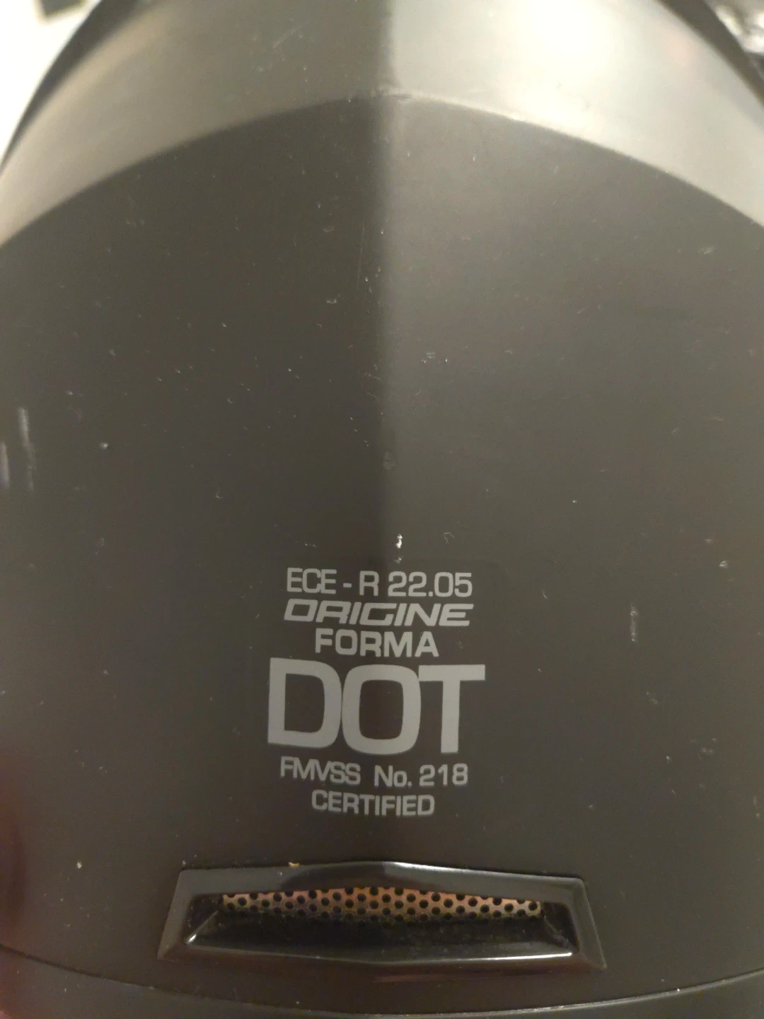 Origine Forma full-face motorcycle helmet in matte black. Size Large (59–60 cm). DOT FMVSS 218 and ECE-R 22.05 certified. Clean condition with normal cosmetic wear. Visor operates smoothly. Never crashed.