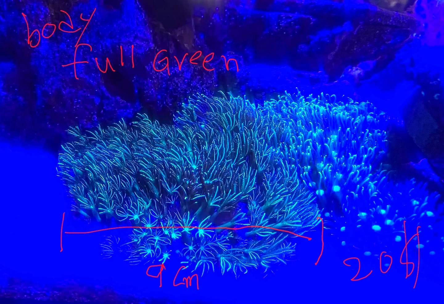 This vibrant Green Star Polyps coral measures approximately 9-11cm across. It's a stunning addition to any saltwater aquarium. These polyps thrive in reef tanks and add a lively texture to your display!