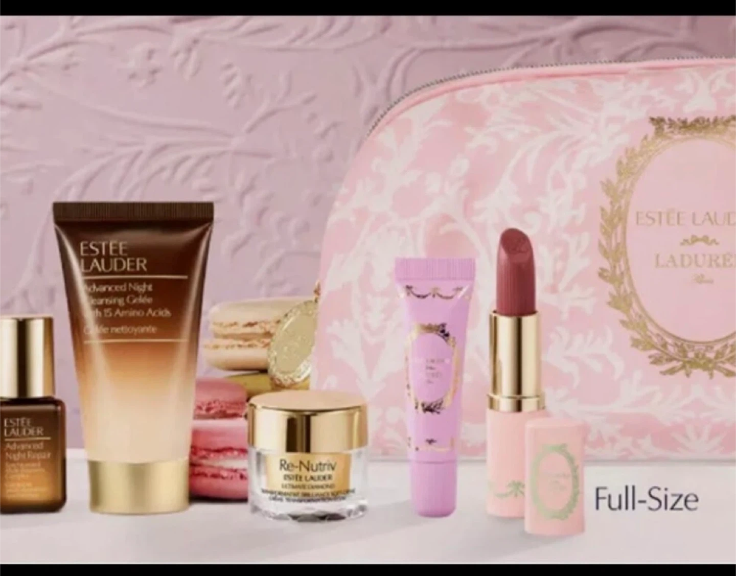 Indulge in luxury skincare with this exclusive collaboration between Estée Lauder and Ladurée. This elegant 6-piece Re-Nutriv Ultimate Diamond gift set combines high-performance skincare with beautiful, collectible presentation.