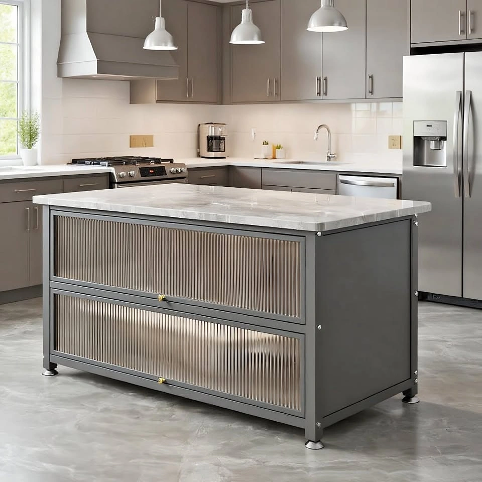 The cabinet doors open to reveal organized compartments that help streamline your storage system. Place small appliances like blenders or rice cookers inside when not in use. This reduces visual clutter and enhances your space.