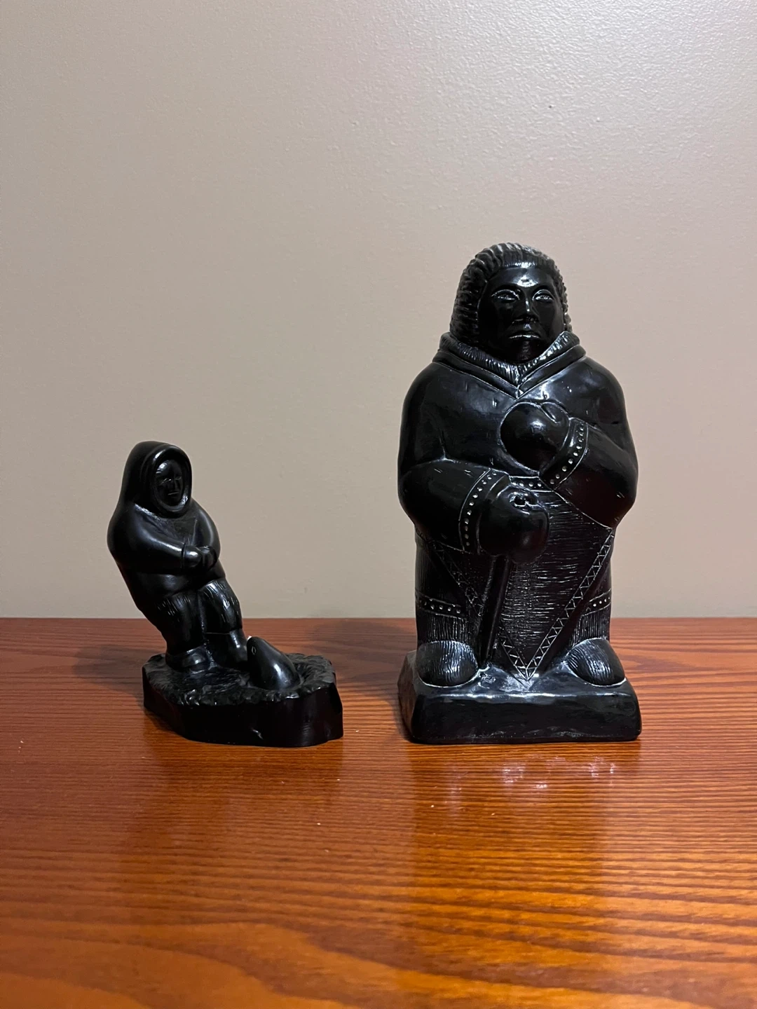 VINTAGE INUIT SEAL HUNTER & SOAPSTONE STATUE