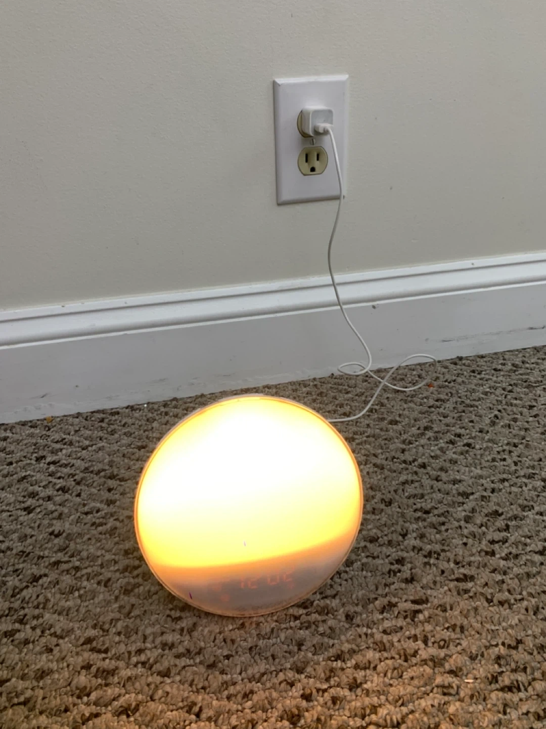 Selling an Ecozy Wake-up Light! It's in great shape and ready to help you start your mornings right. It comes with its charger, so you're all set to go. This light can simulate sunrise to gently wake you up, which is a really nice way to start the day