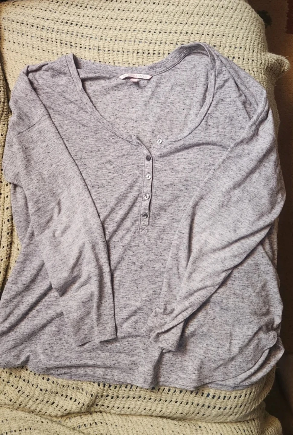 Victoria Secret grey long sleeve pj shirt, size medium very comfy, 2$