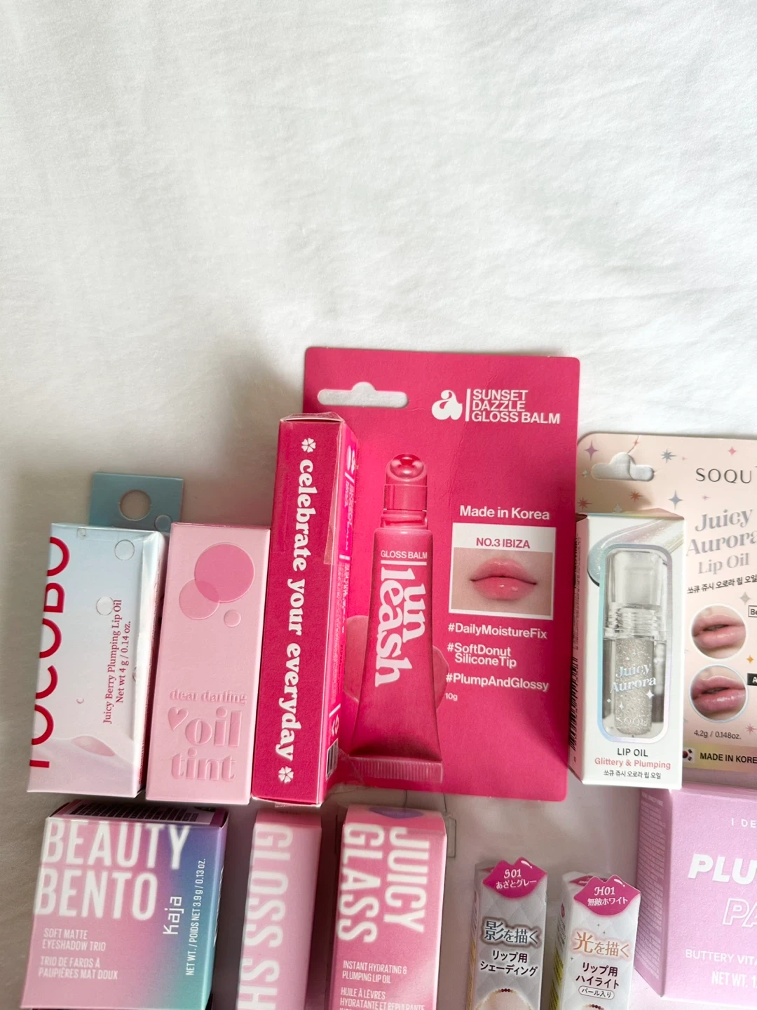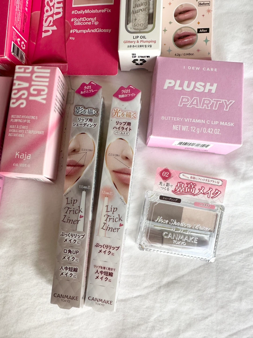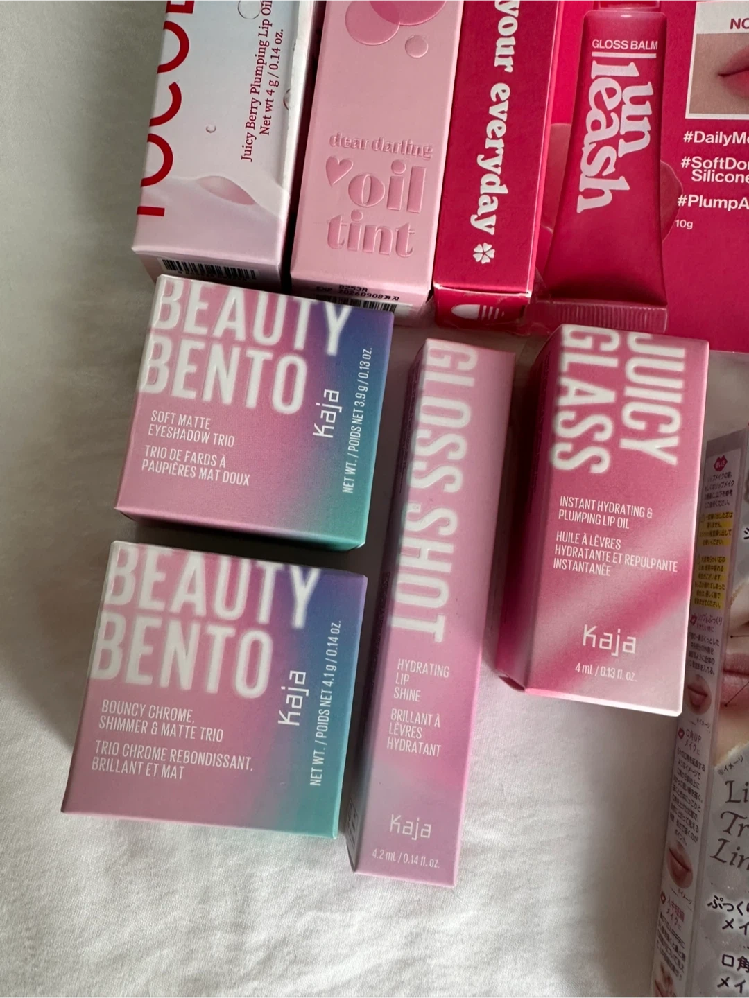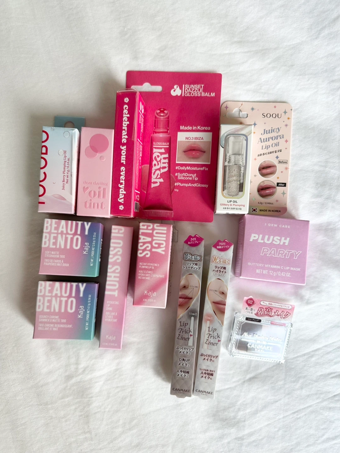New, unused makeup of various brands: Canmake, Kaja Beauty, Tocobo, Etiude, Unleashia.