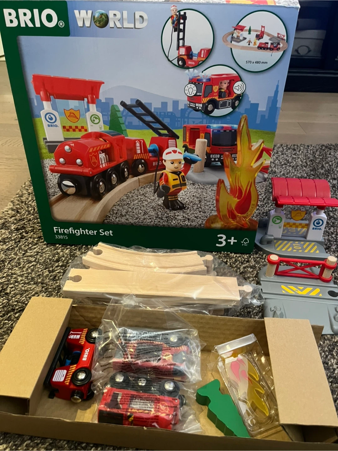 Selling a BRIO World Firefighter Set! This set is great for kids aged 3 and up. Includes the original box and all the pieces you see here to build your own fire rescue adventures