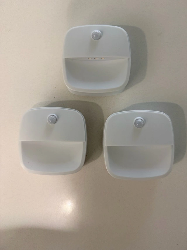 Tired of stubbing your toes in the dark? This motion-activated LED night light trio is perfect for hallways, stairs, or any dark area. They turn on automatically when they detect movement, helping you avoid trips and falls. Each light uses 3 AAA batteries (not included). Simple white design, looks like mini flying saucers. Great for preventing accidents! Condition: Like new. Pickup in H1W 0B9 (Hochelaga).