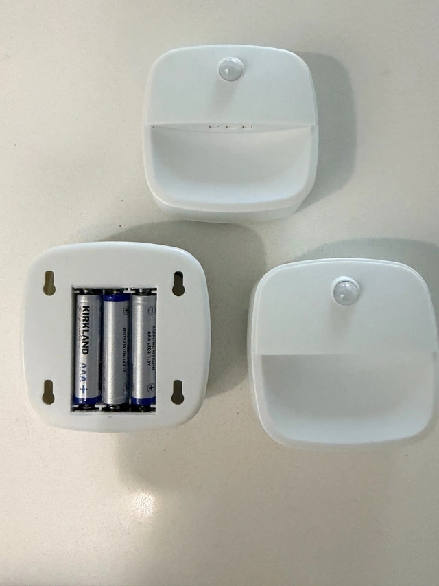 Tired of stubbing your toes in the dark? This motion-activated LED night light trio is perfect for hallways, stairs, or any dark area. They turn on automatically when they detect movement, helping you avoid trips and falls. Each light uses 3 AAA batteries (not included). Simple white design, looks like mini flying saucers. Great for preventing accidents! Condition: Like new. Pickup in H1W 0B9 (Hochelaga).