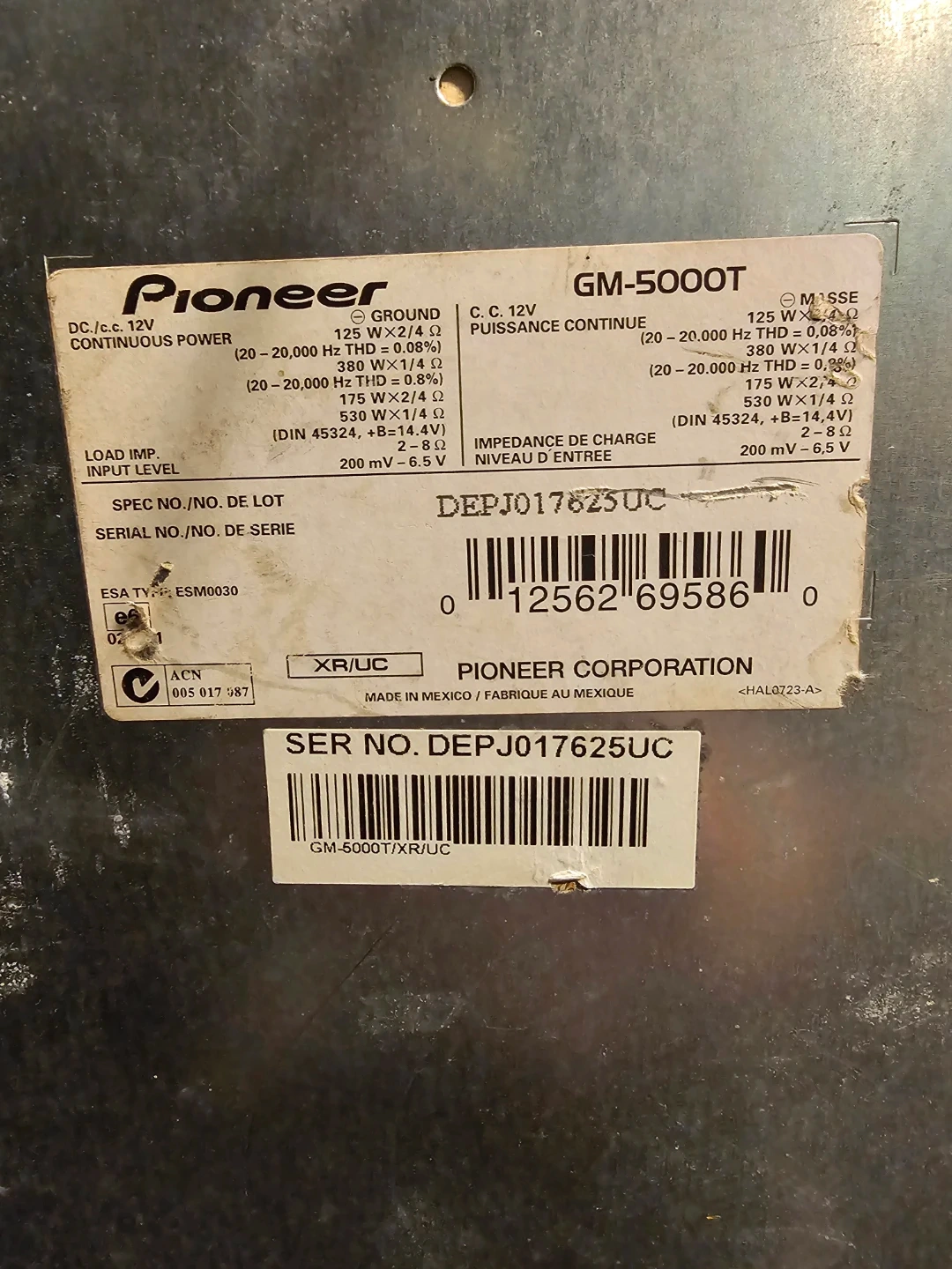 Selling a Pioneer GM-5000T bridgeable 2-channel power amplifier. It's a 760W max power MOSFET power supply. Check out the photos for details! As is