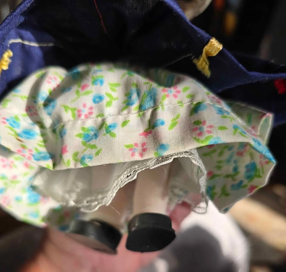 Vintage 1970s Ginny doll. Eyes open and close. Arms, head, and legs move. Clothes have never been removed, just sat on shelf. Includes black shoes. Dressed in European folk attire similar to Madame Alexander's Canada doll. Her adorable face needs a new home!