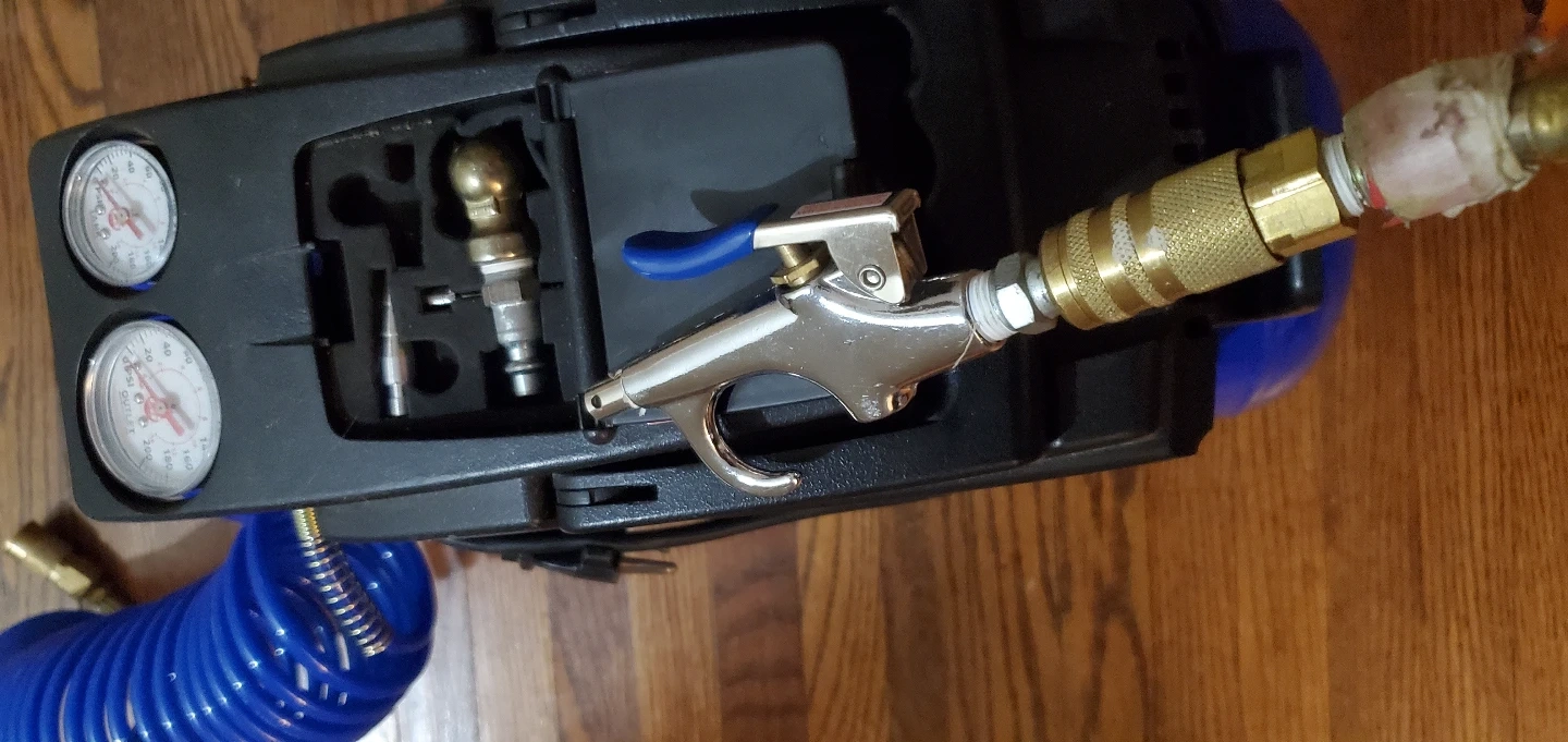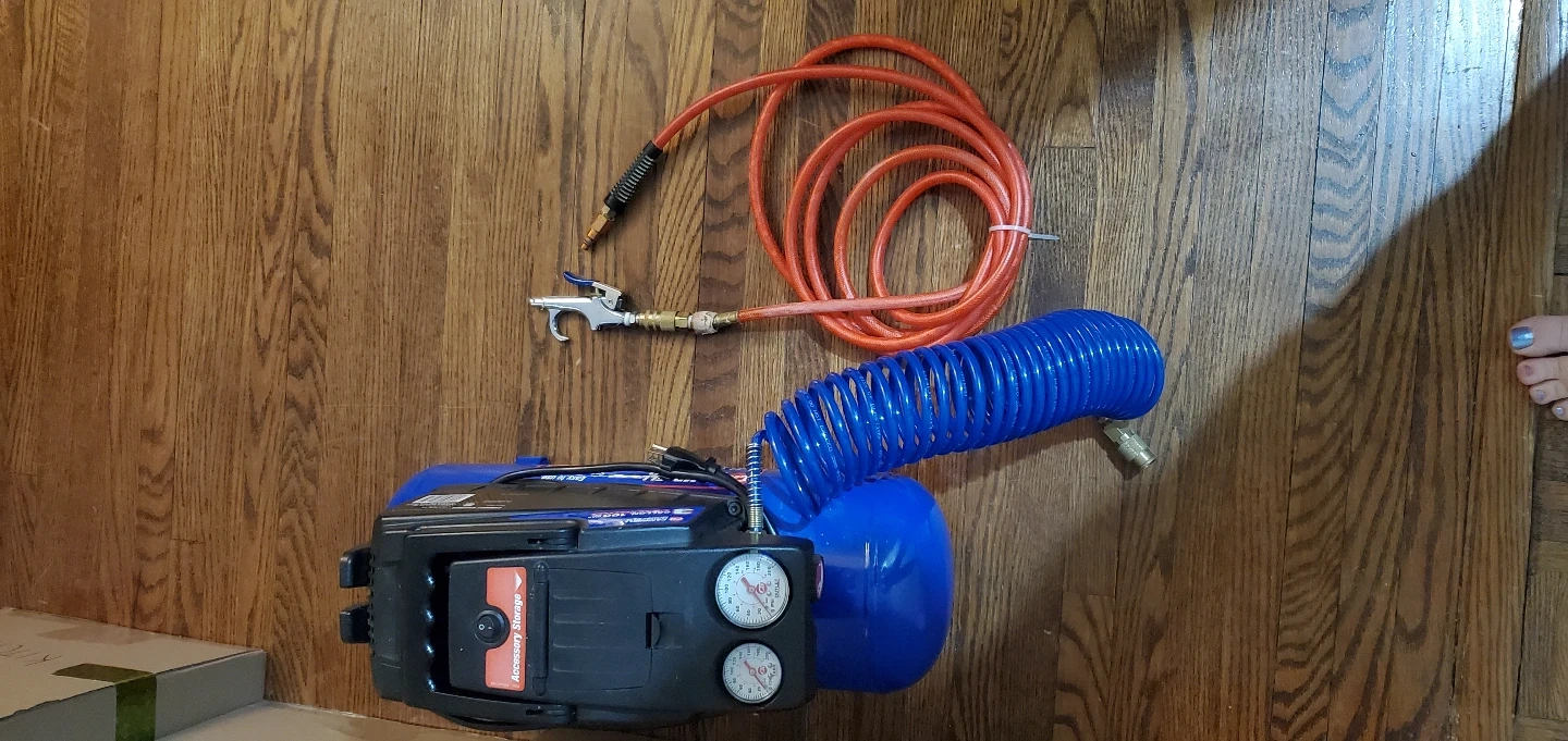 this was only used a few times to nail in trim around the house and blow out water lines at a cottage.