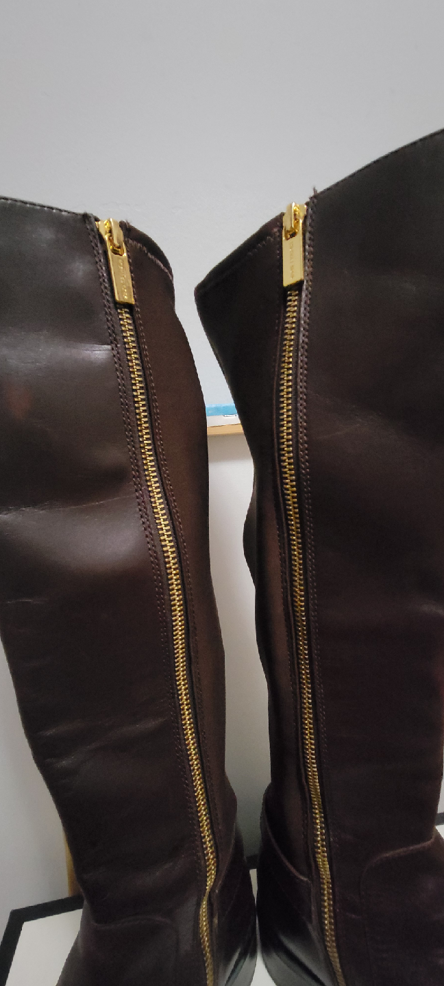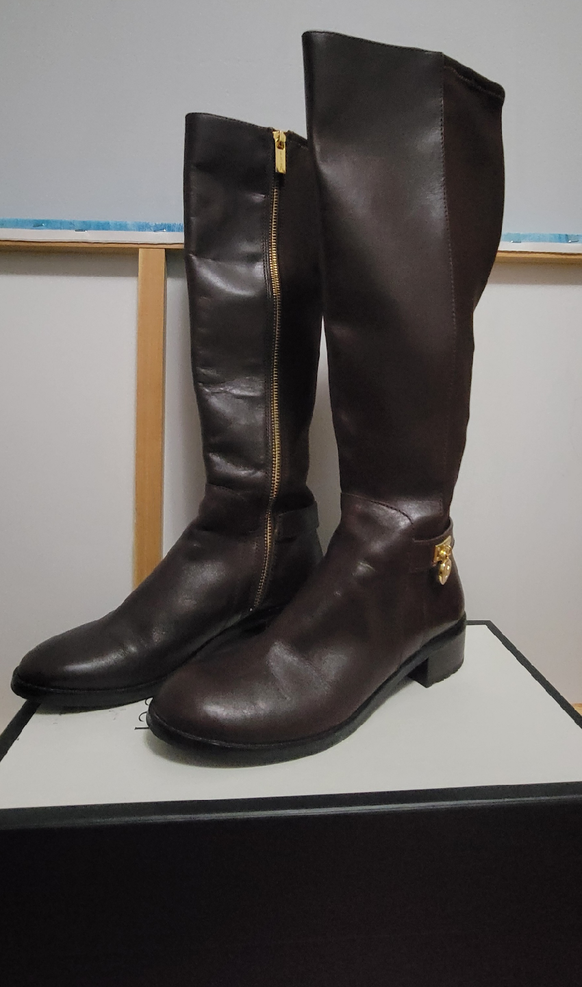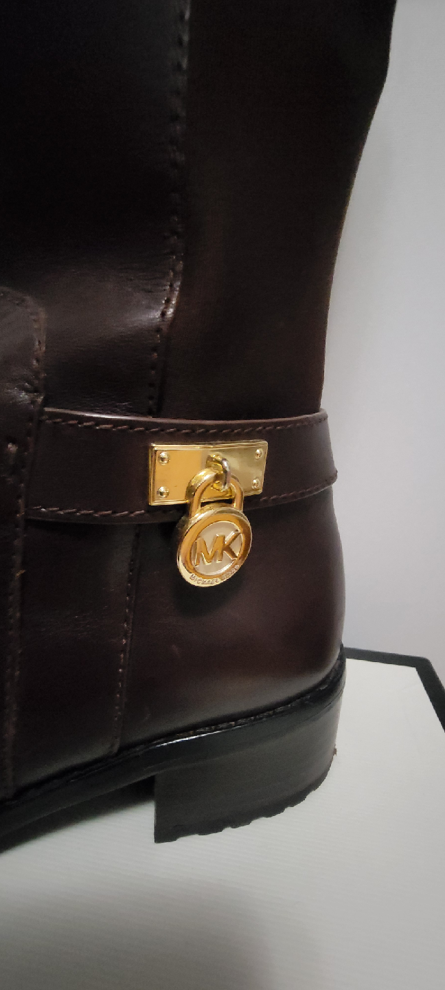 Selling a pair of Michael Kors knee-high boots in a beautiful brown leather. These boots feature a gold zipper and MK logo detail. They're in great condition and perfect for fall! The back stretches π