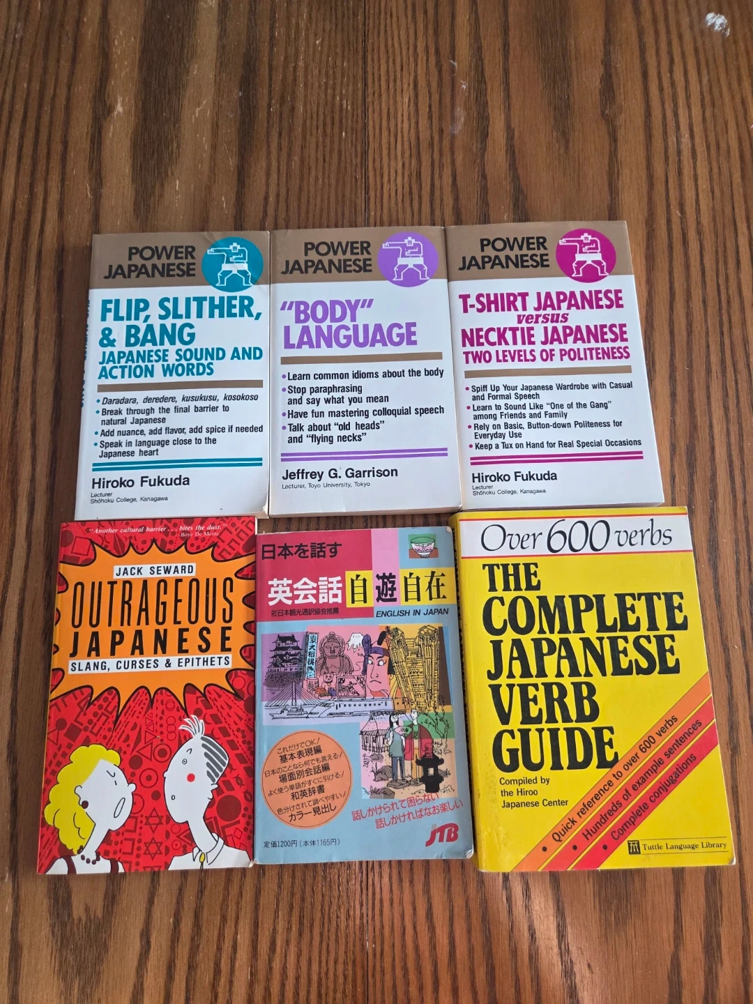 All have no writing and are in excellent used condition except for 'the complete japanese verb guide', which has some staining at the bottom and writing/highlighting. Price is negotiable to some degree. Pickup near Mayfield Common.