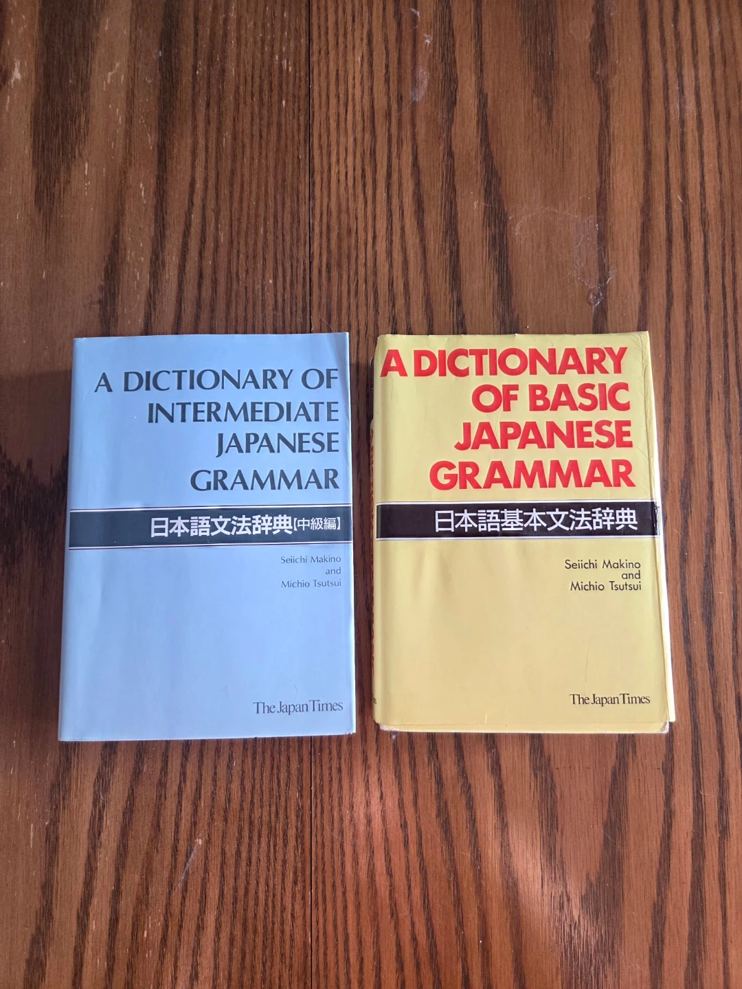 'A Dictionary of Basic Japanese Grammar' and 'A Dictionary of Intermediate Japanese Grammar' by Seiichi Makino and Michio Tsutsui. Retails for $40 each, selling for $20 each.