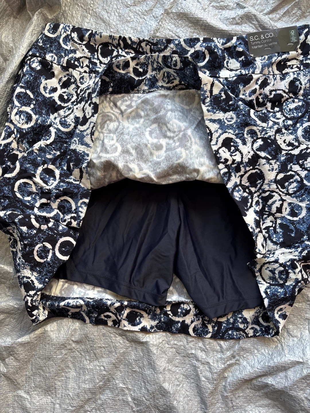 This skort from S.C. & CO. features a comfortable stretch fabric and an easy pull-on design. It includes a built-in stretch undershort for added convenience. Perfect for active days!