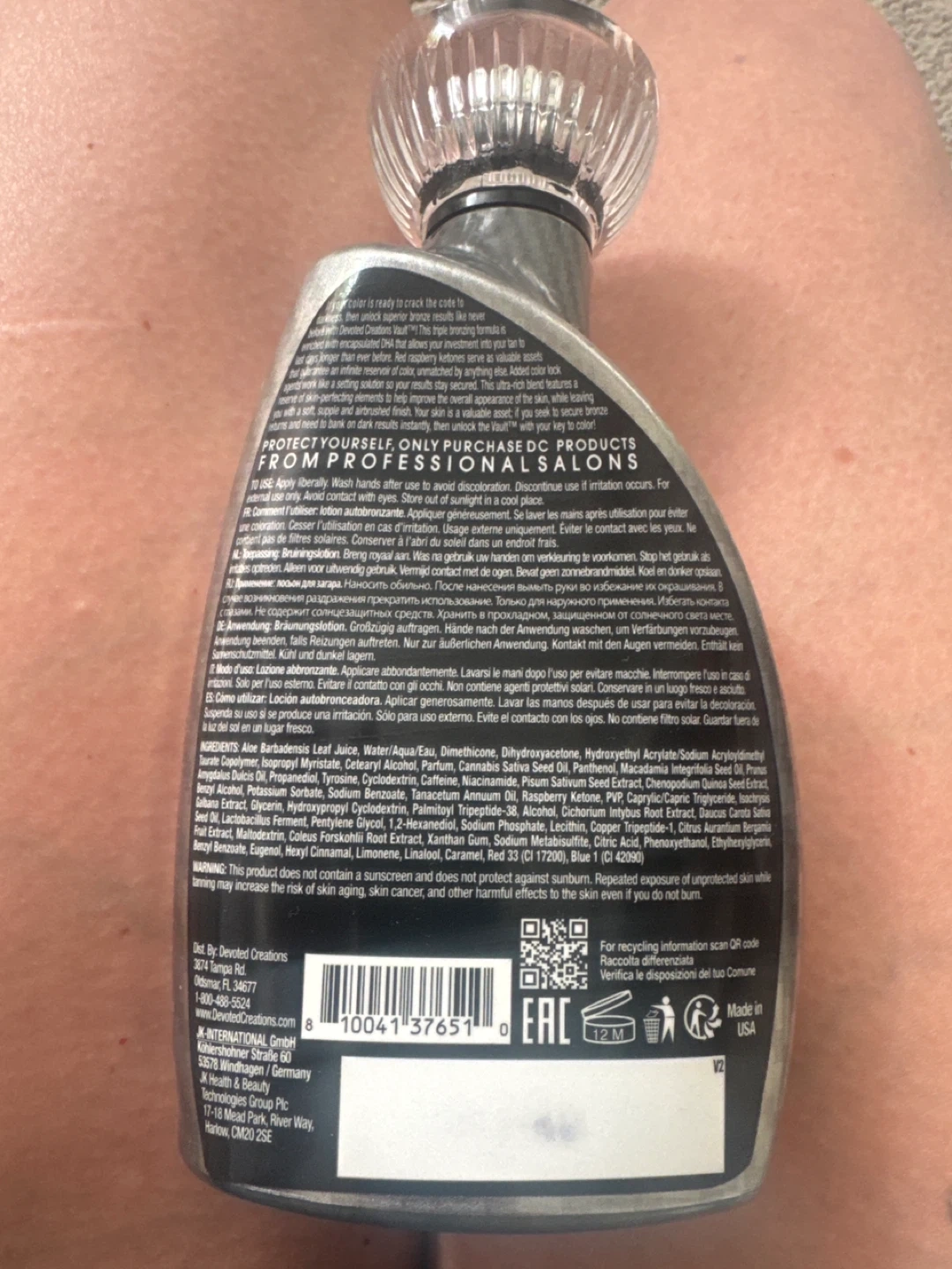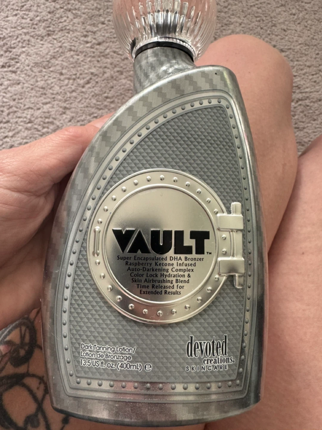 This VAULT Dark Tanning Lotion by Devoted Creations is a super encapsulated DHA bronzer. It's raspberry ketone infused and features a complex for auto-darkening and advanced hydration. The formula is a skin airbrushing blend for extended results.