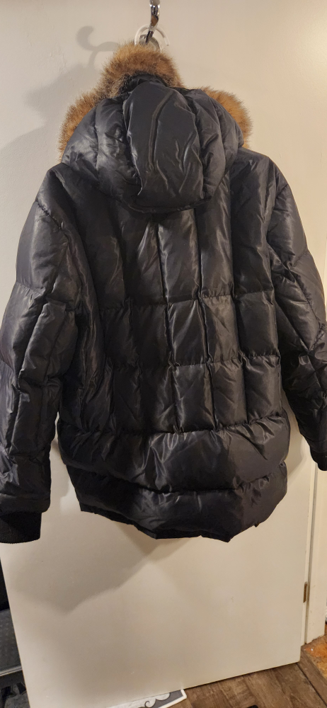Selling a GAP black puffer jacket in size medium. It's in great condition and perfect for the cold weather! Features a fur-trimmed hood and plenty of pockets to keep your belongings safe and sound.